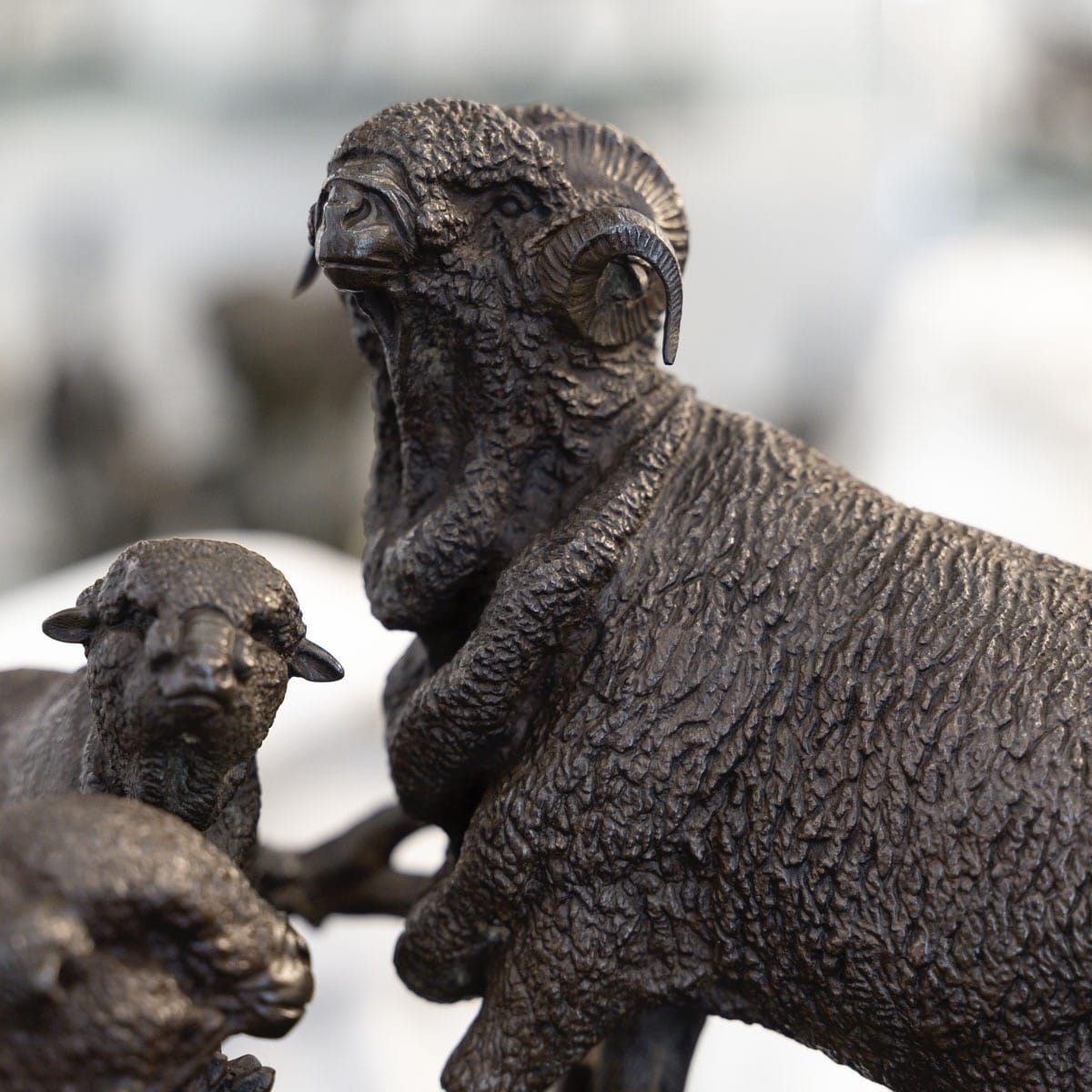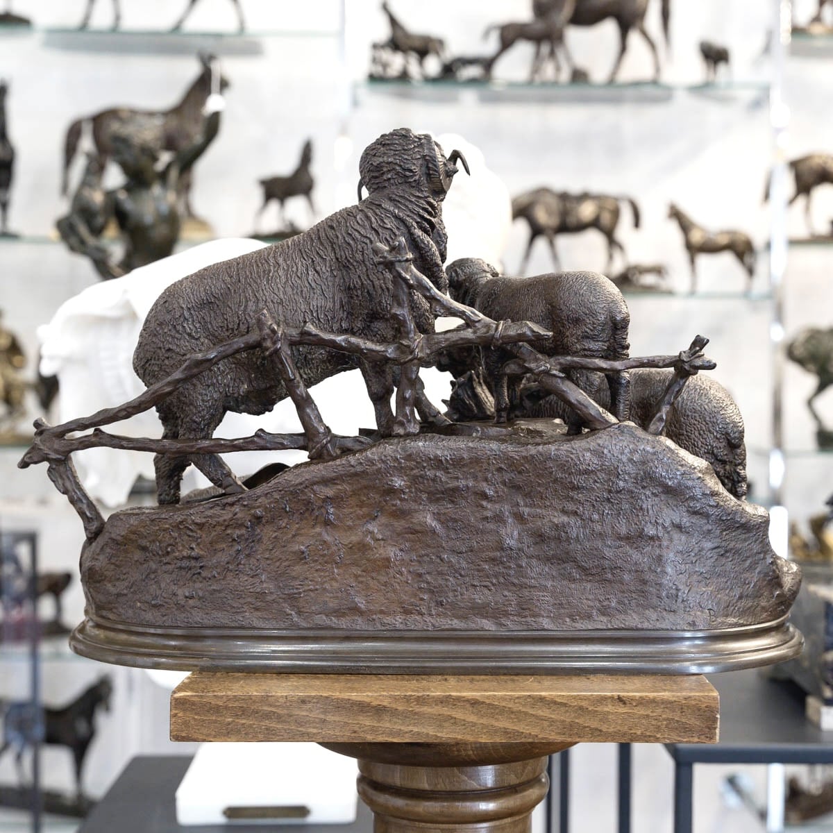 Important groupe en bronze à patine brune , représentant une famille de mérinos , par le sculpteur Jules Moigniez (1835 – 1894) .