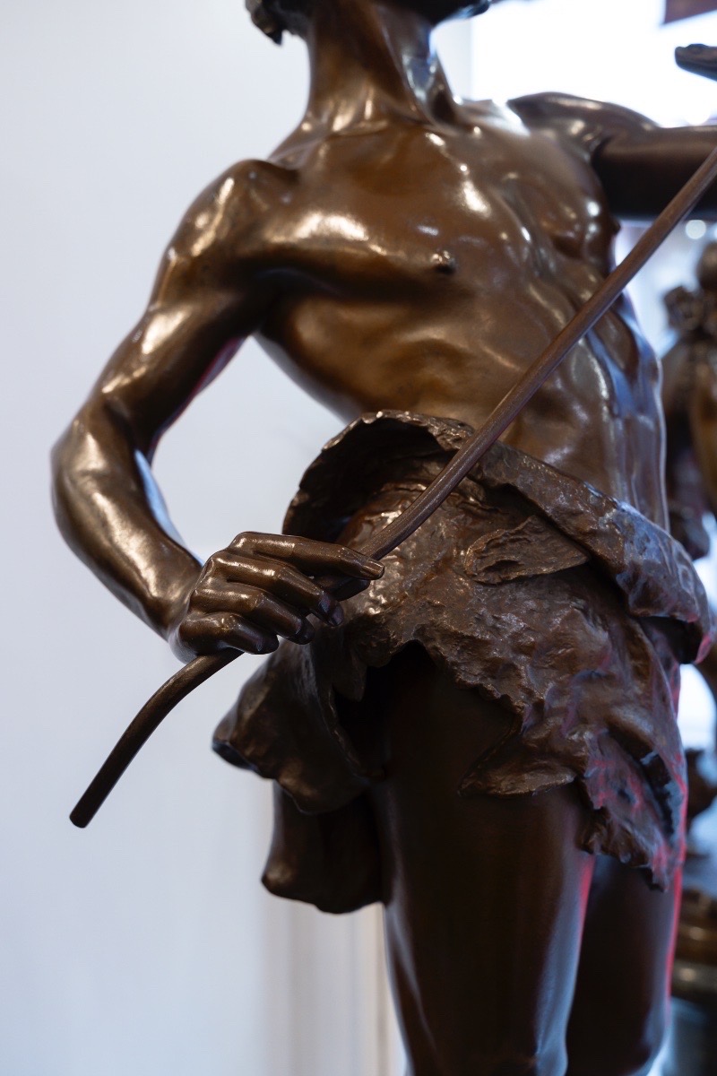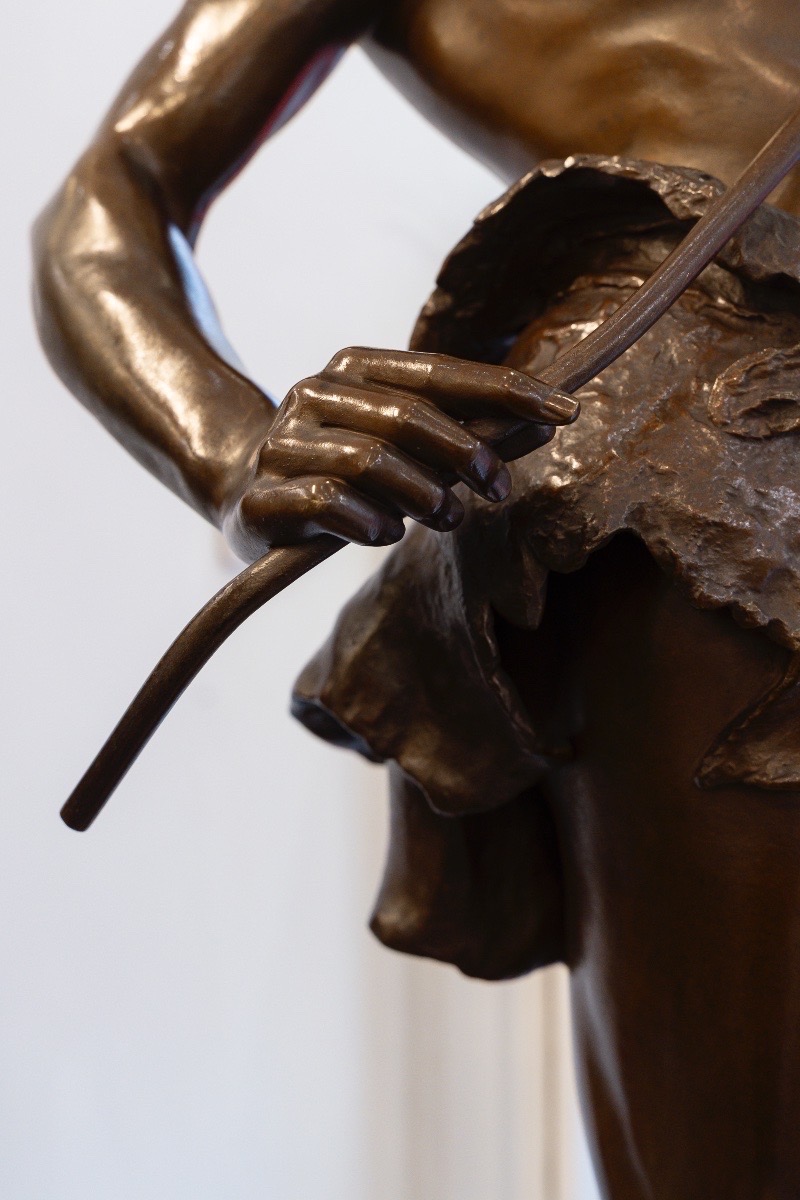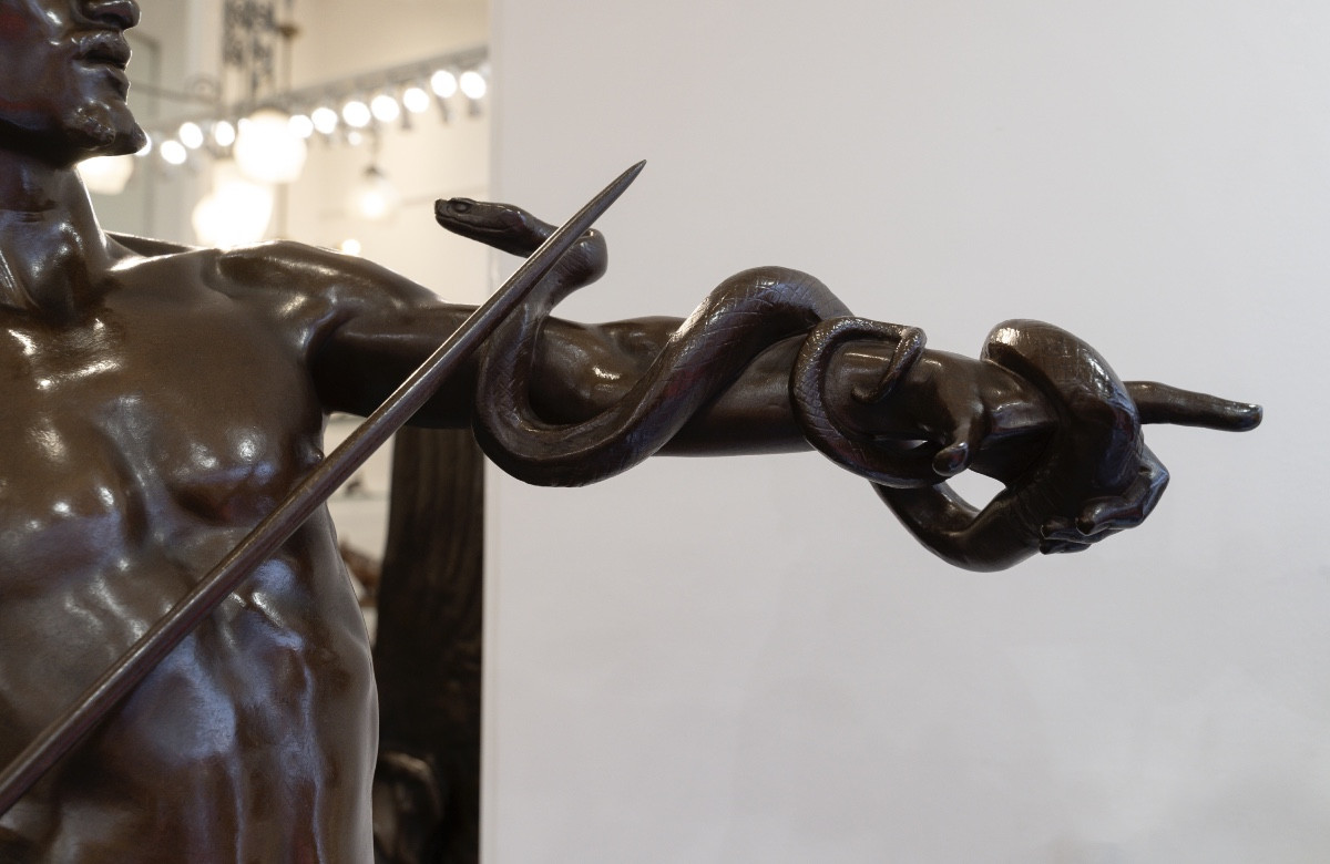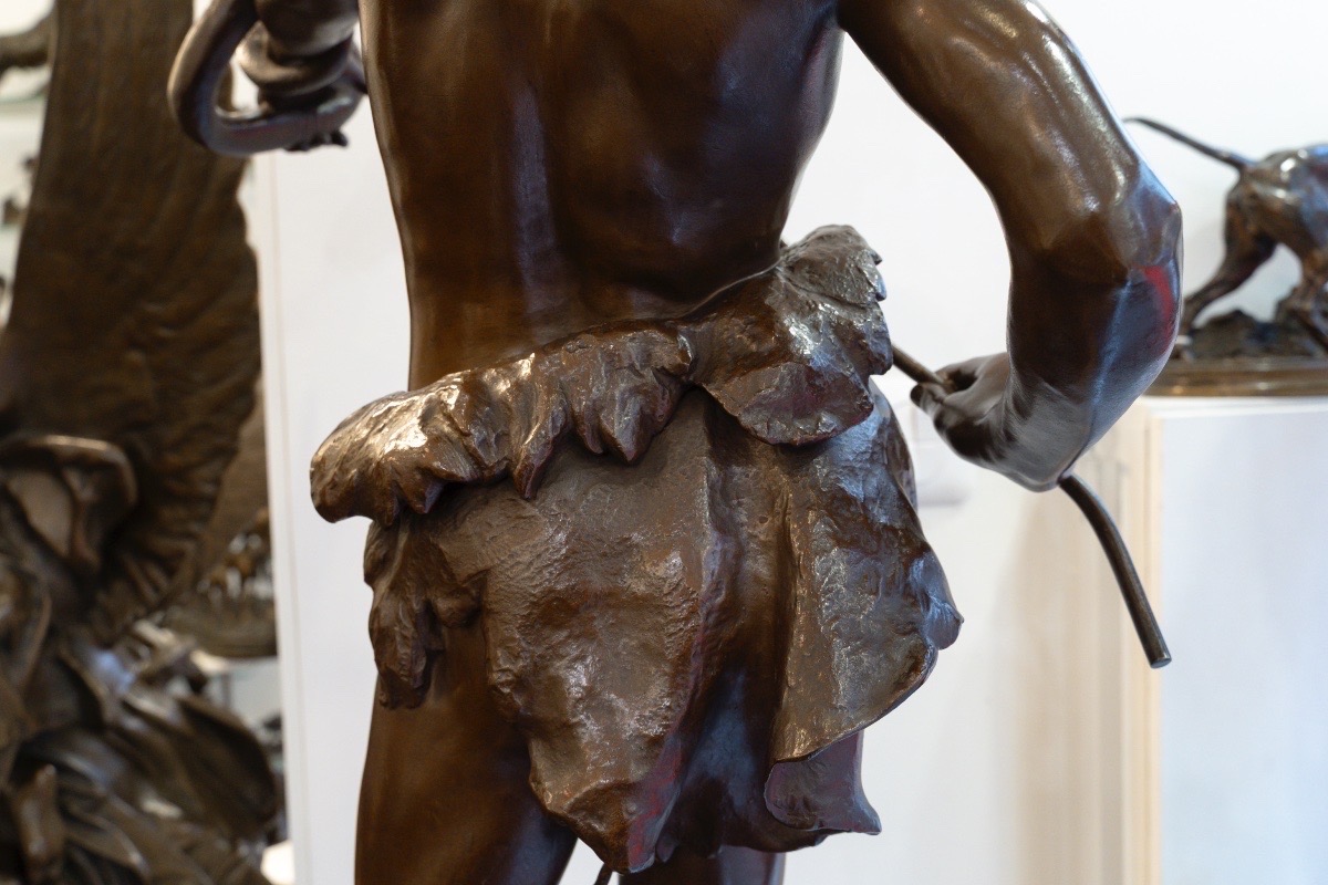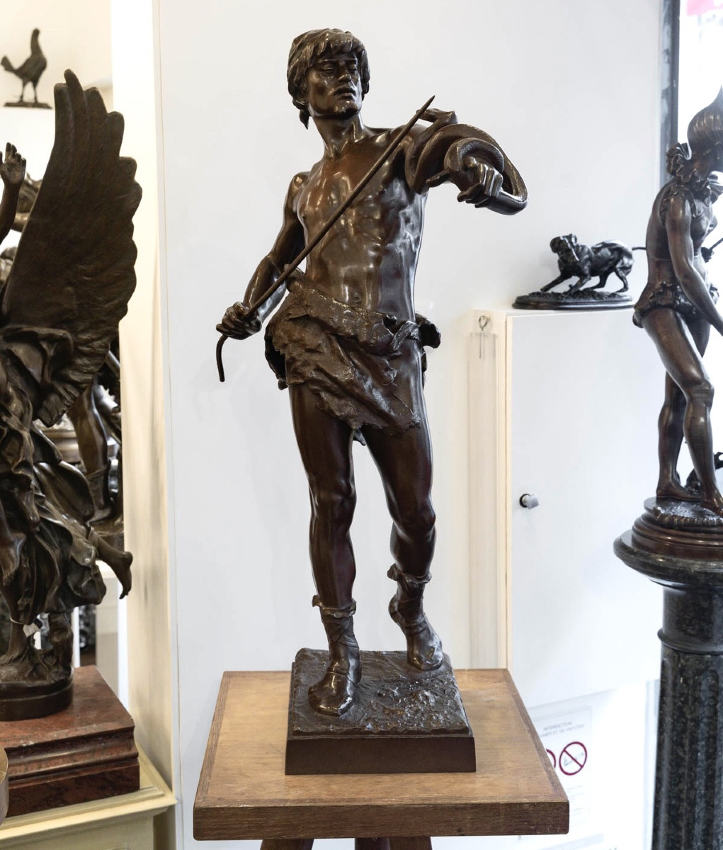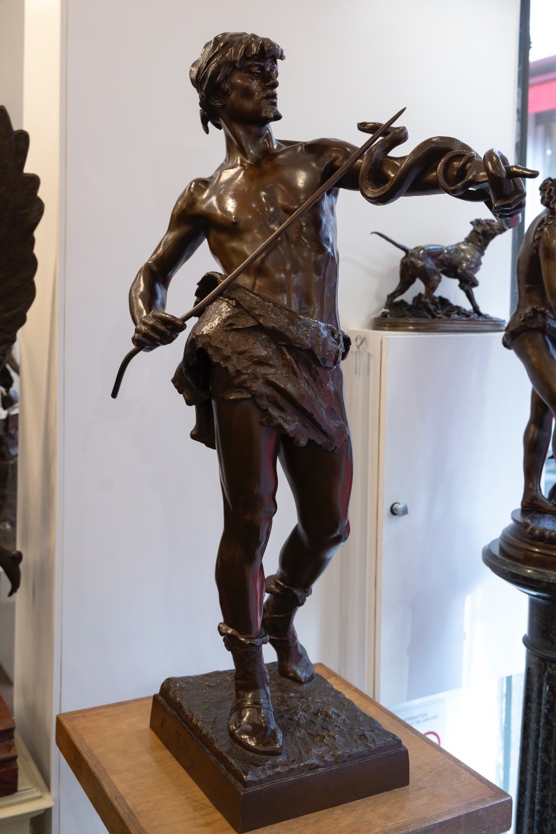 Œuvre emblématique du sculpteur Eugène Marioton (1857-1933) , « Le Charmeur De Serpent » aussi appelé « Fascinator » , allie un sens aigu du mouvement à une maîtrise technique indéniable .
