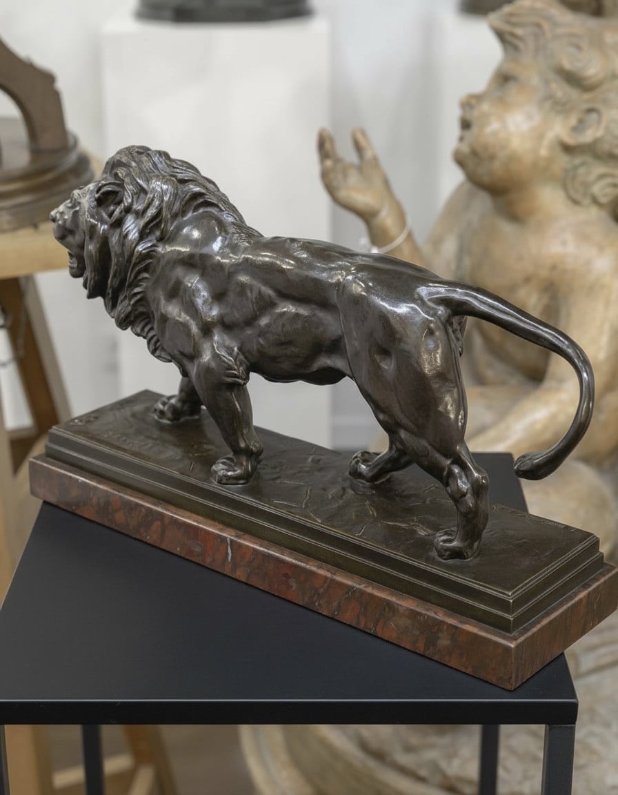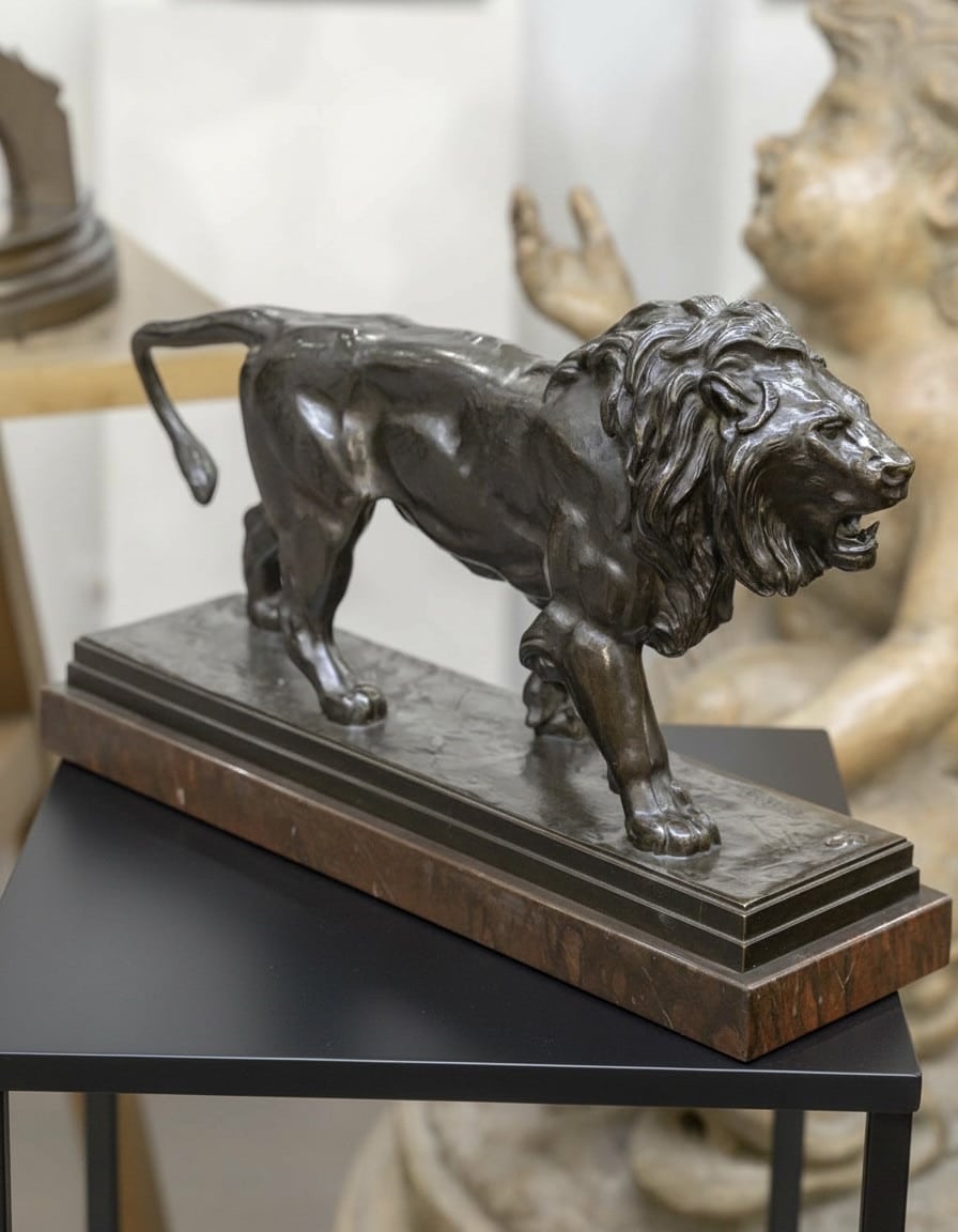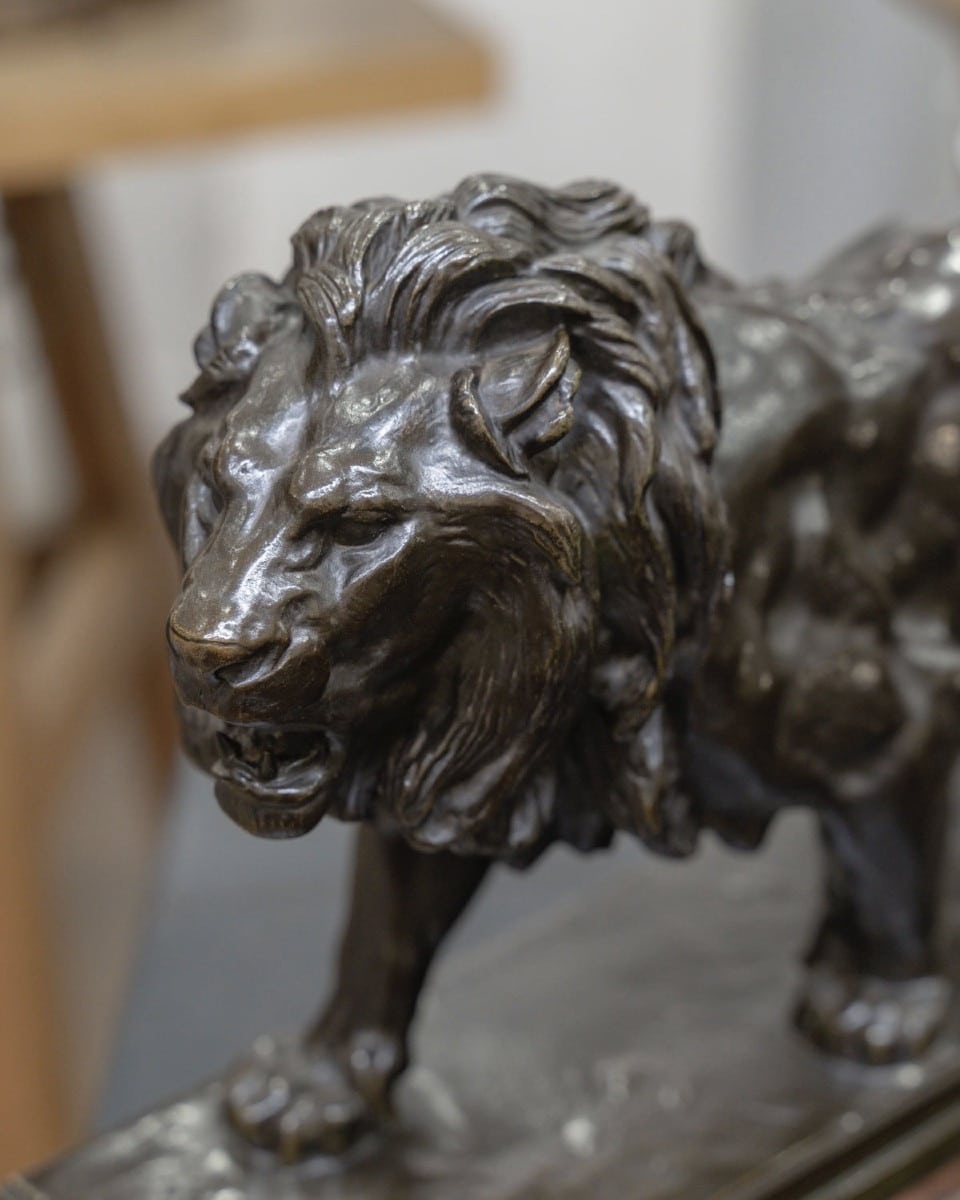 Importante épreuve en bronze à patine brune , représentant le « Lion Marchant » , par le célèbre sculpteur animalier Antoine – Louis Barye (1795-1875) .