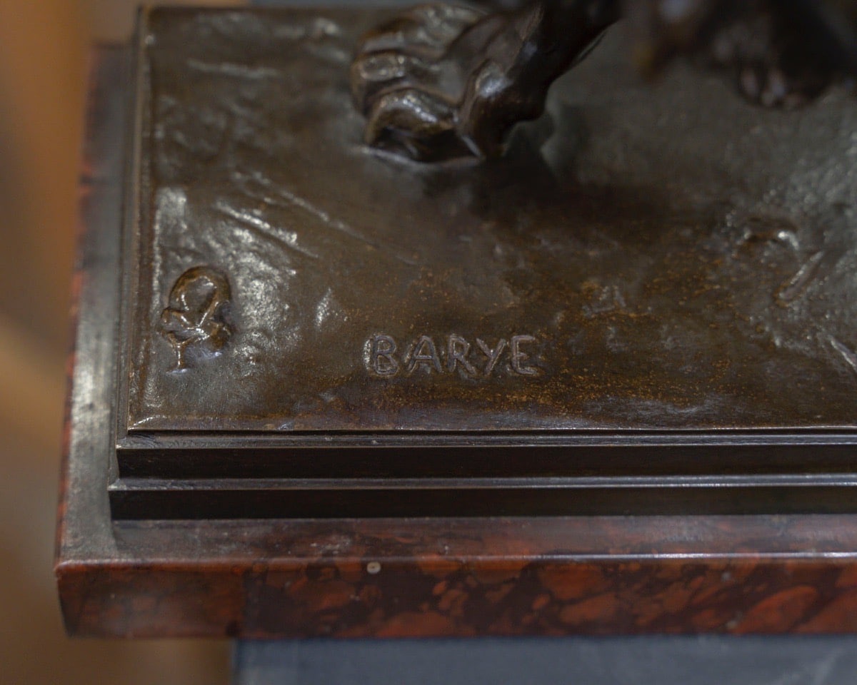 Bronze signé « BARYE » en creux sur la terrasse naturaliste , richement ciselée .