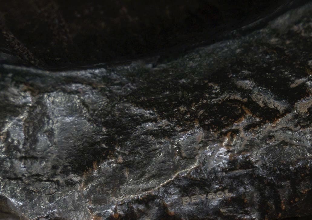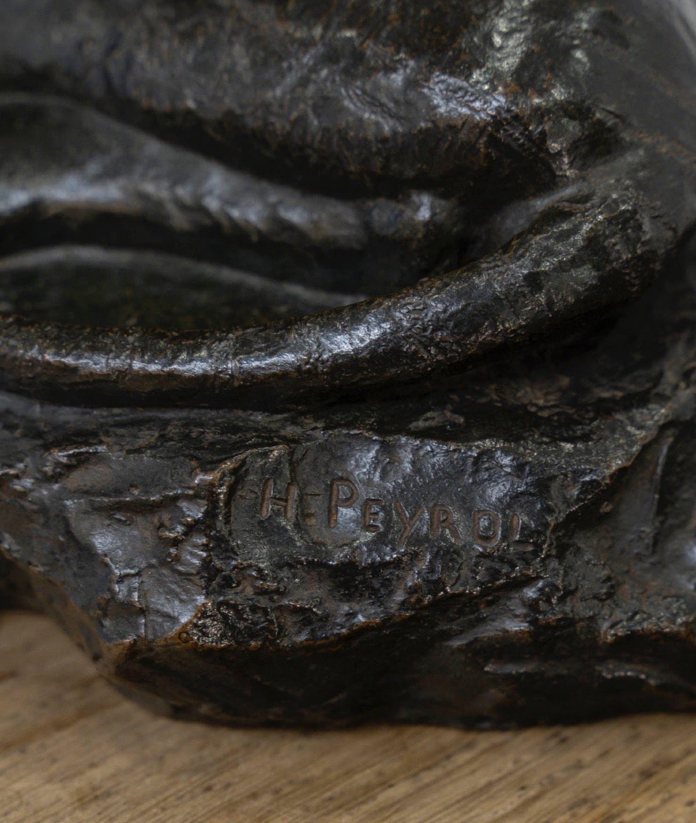 Signature du sculpteur « H.Peyrol »apposée en creux sur la terrasse naturaliste , Marque du fondeur « PEYROL » , au dos de la sculpture .