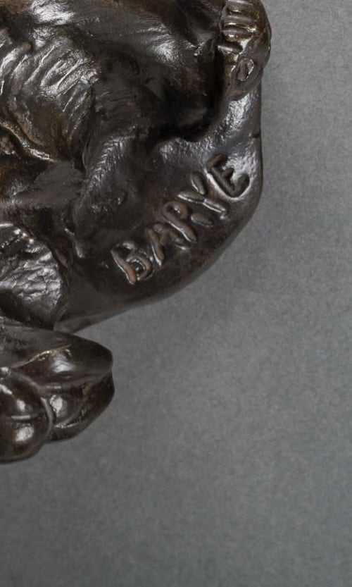 An early edition sculpture , signed « BARYE » , in relief on the naturalistic base .