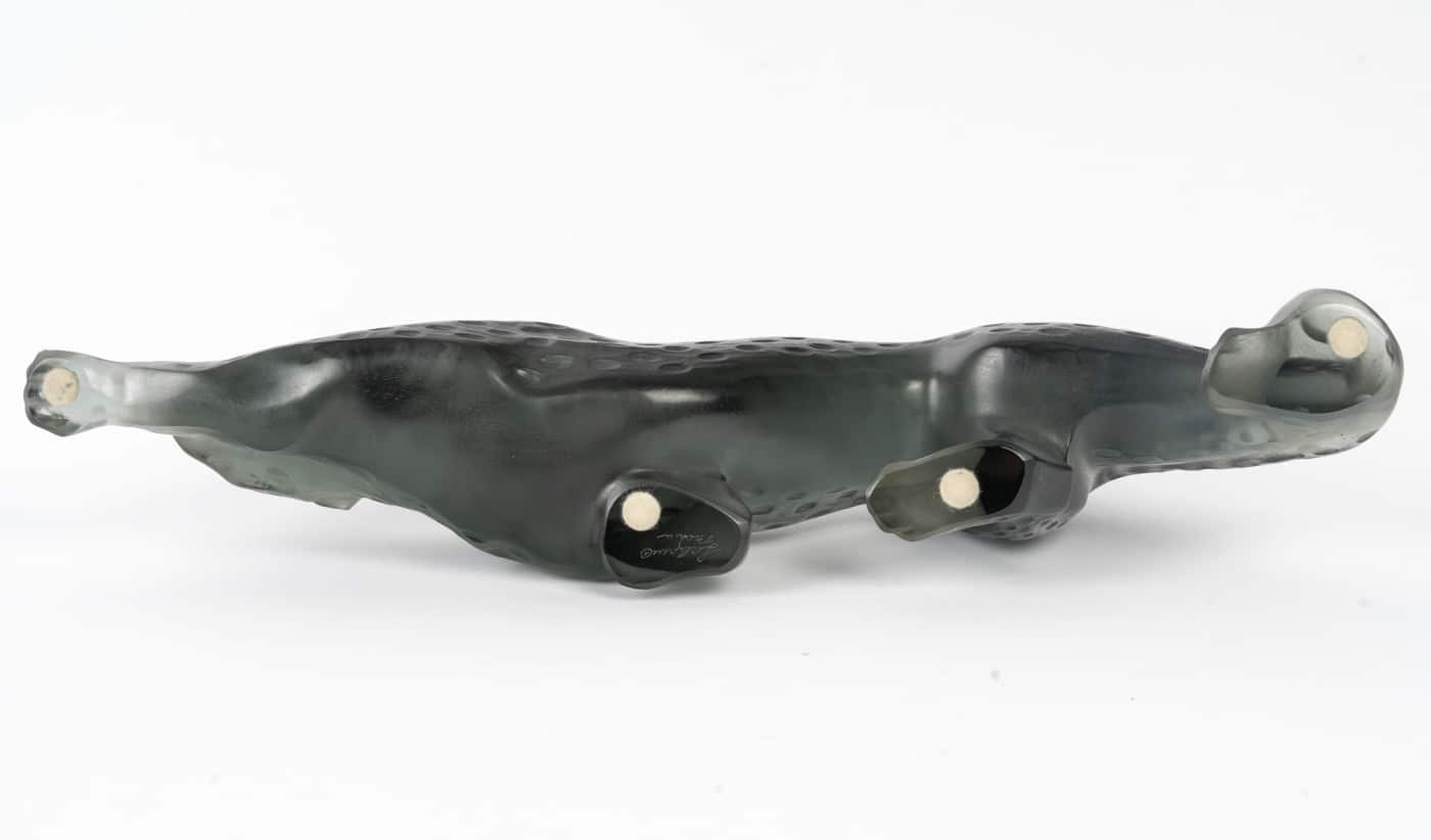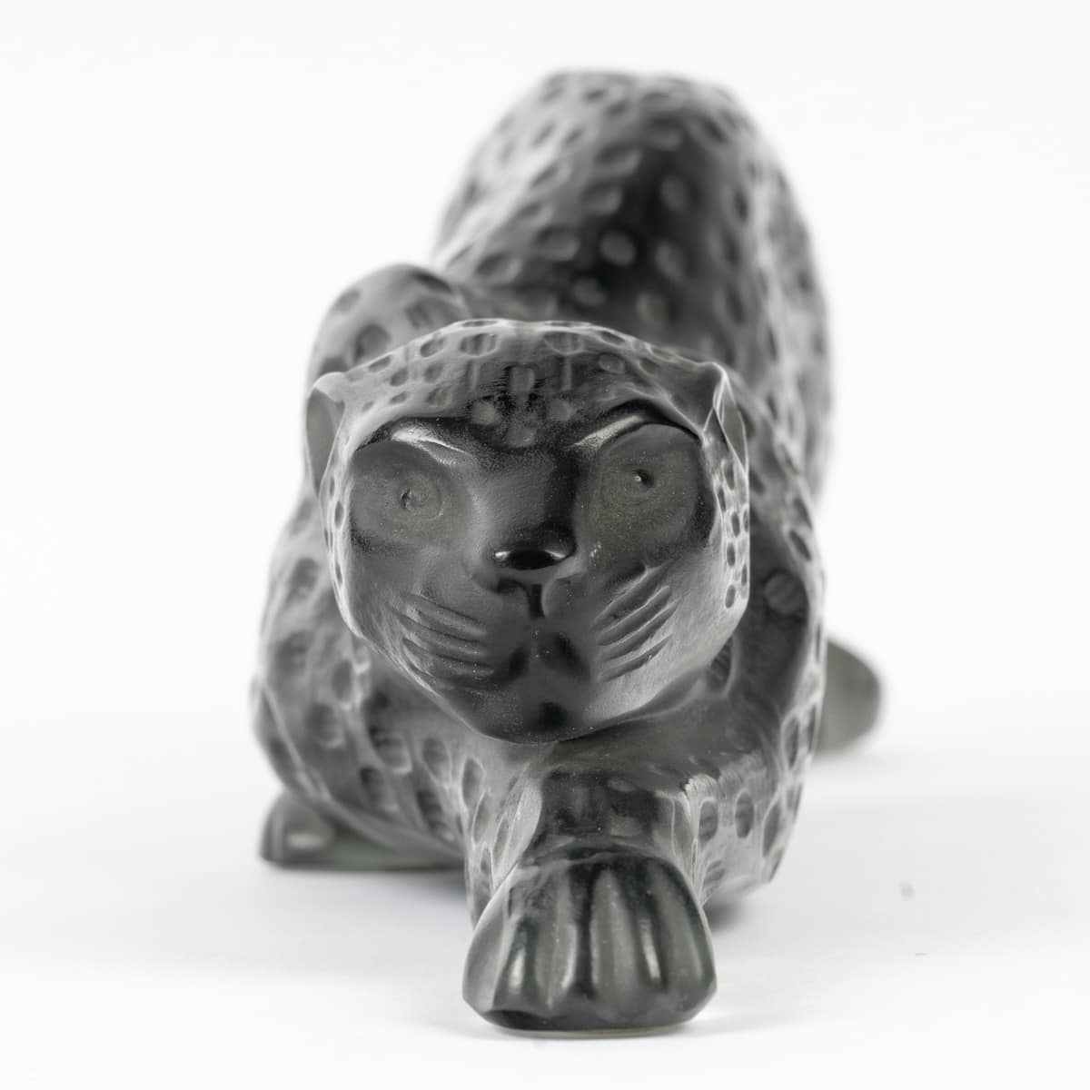 Sculpture « Panthère Zeila » en cristal gris créée par Marie-Claude Lalique en 1990.