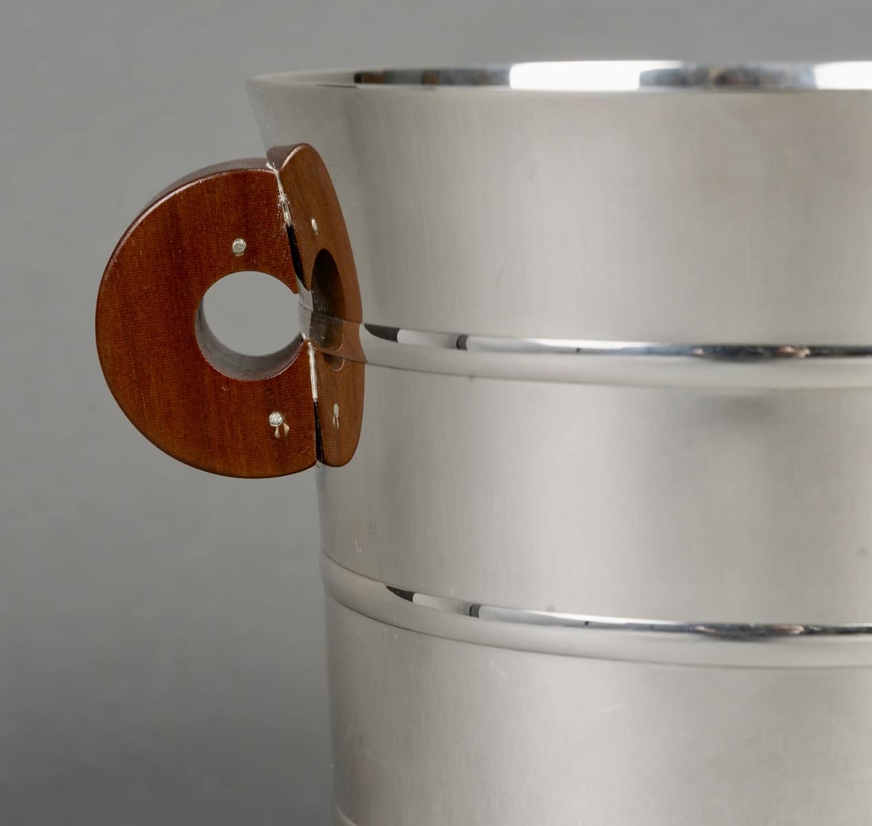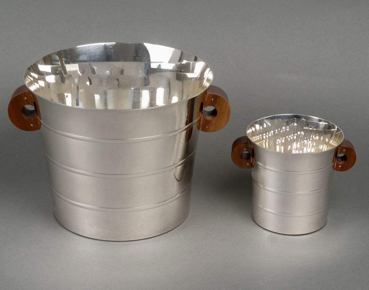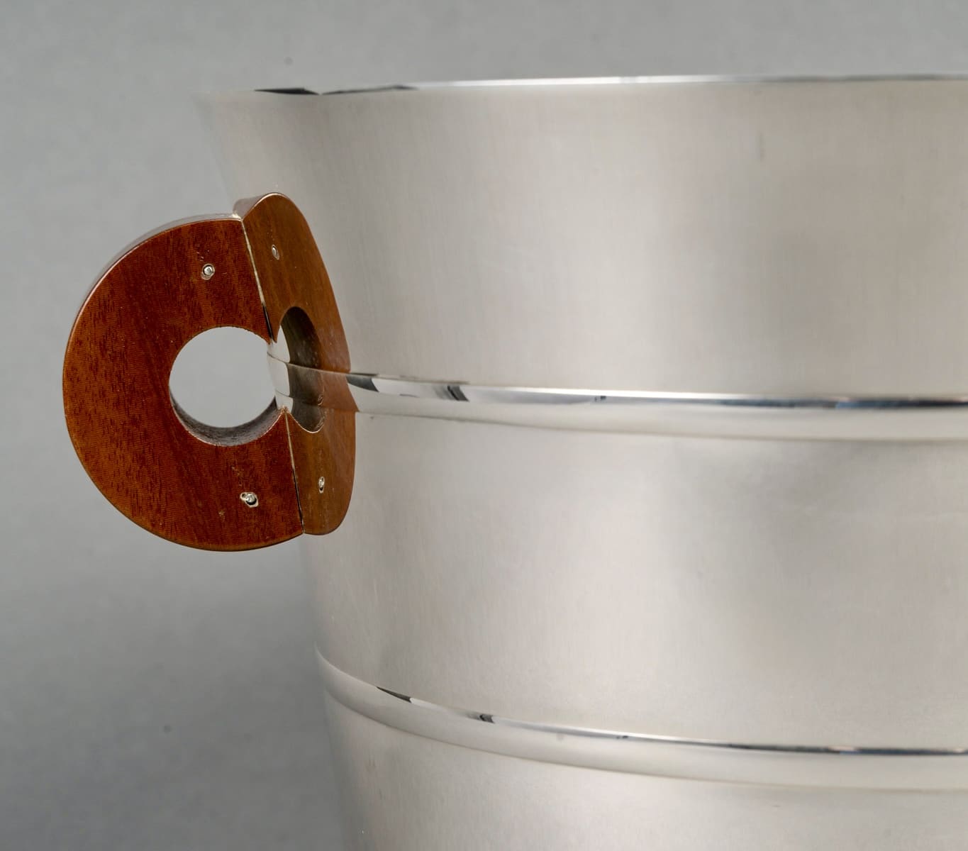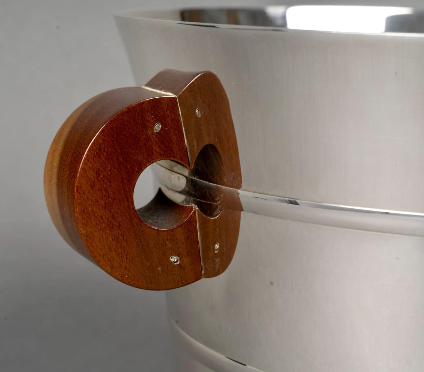 Seau à Champagne et à Glaçons « Epsilon » en argent massif et prises en noyer de Puiforcat d’après un modèle Jean E. Puiforcat créé en 1936.