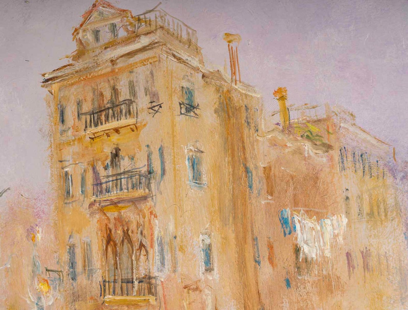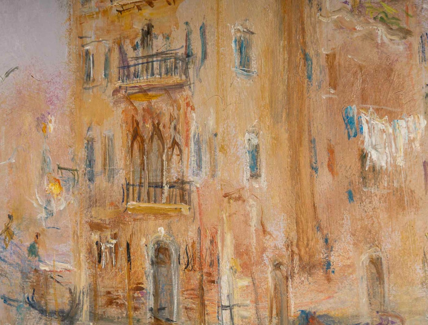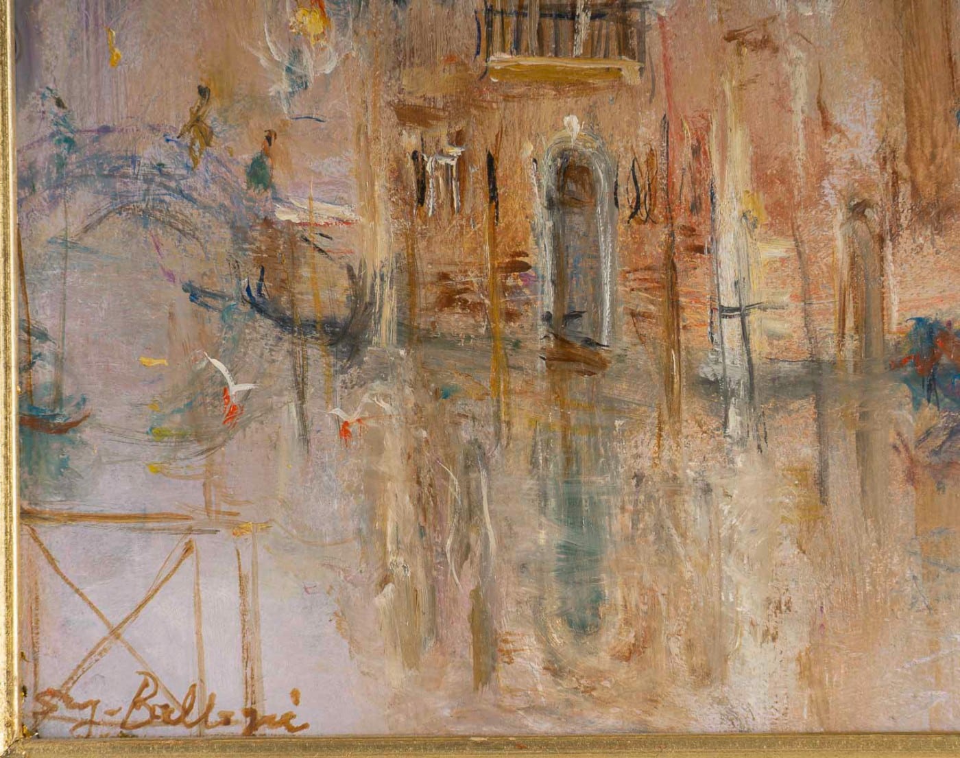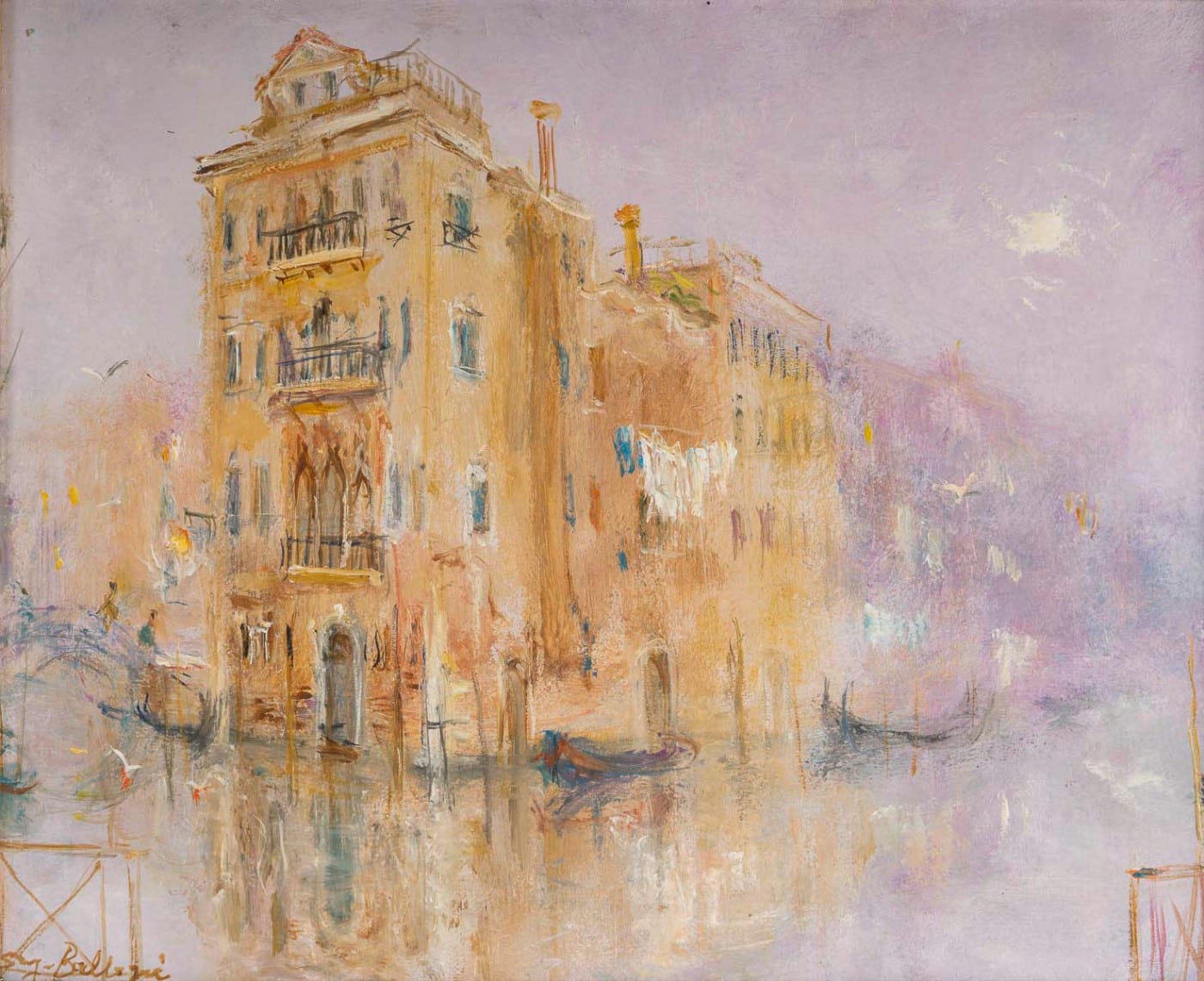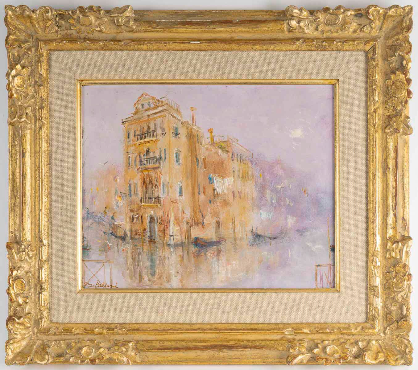 Serge Belloni (1925-2005) Venice Canal in the mist oil on wood circa 1970