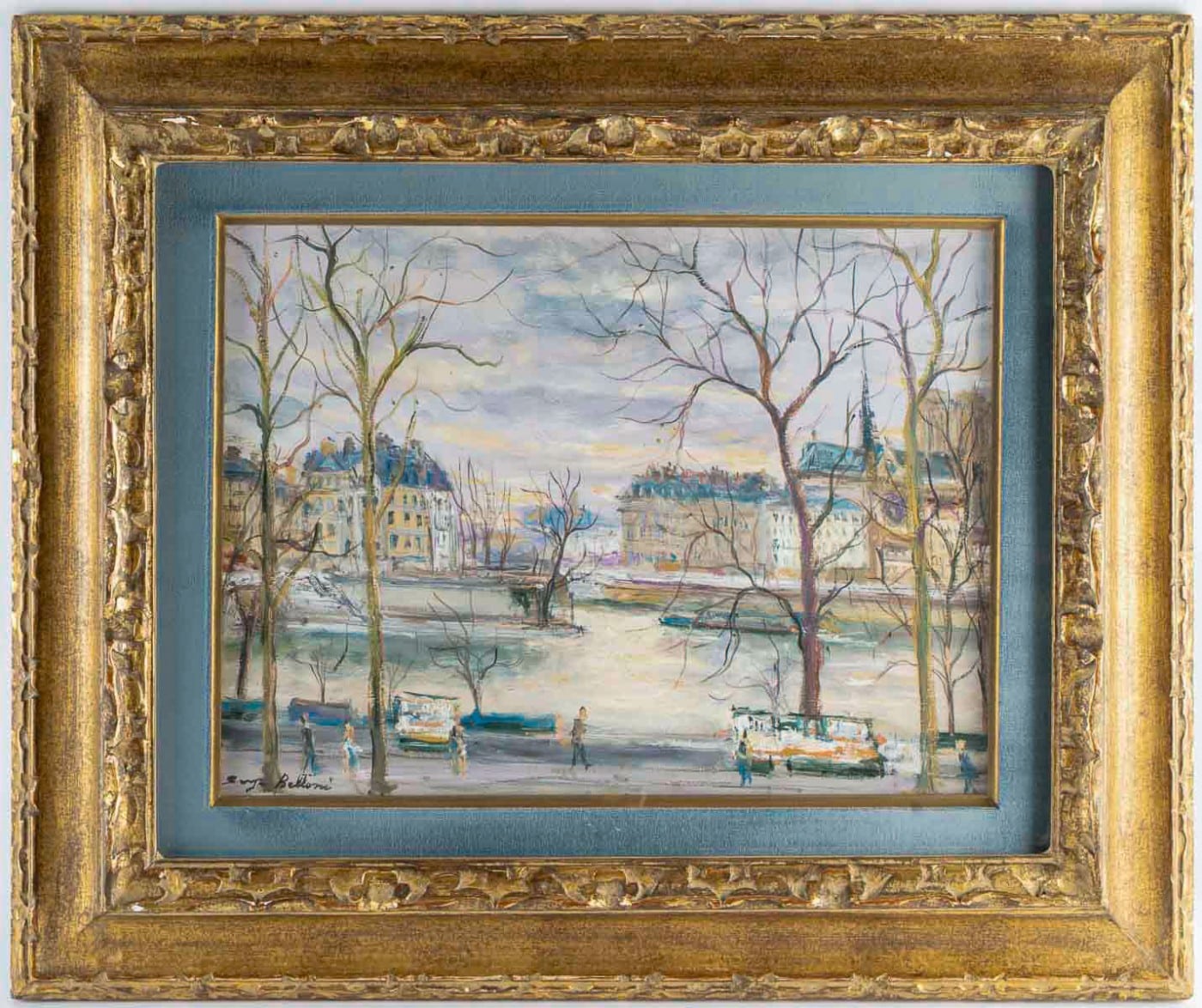 Serge Belloni (1925–2005) – The Quays of Paris, Île Saint-Louis, and the Bouquinistes Oil on wood, circa 1980