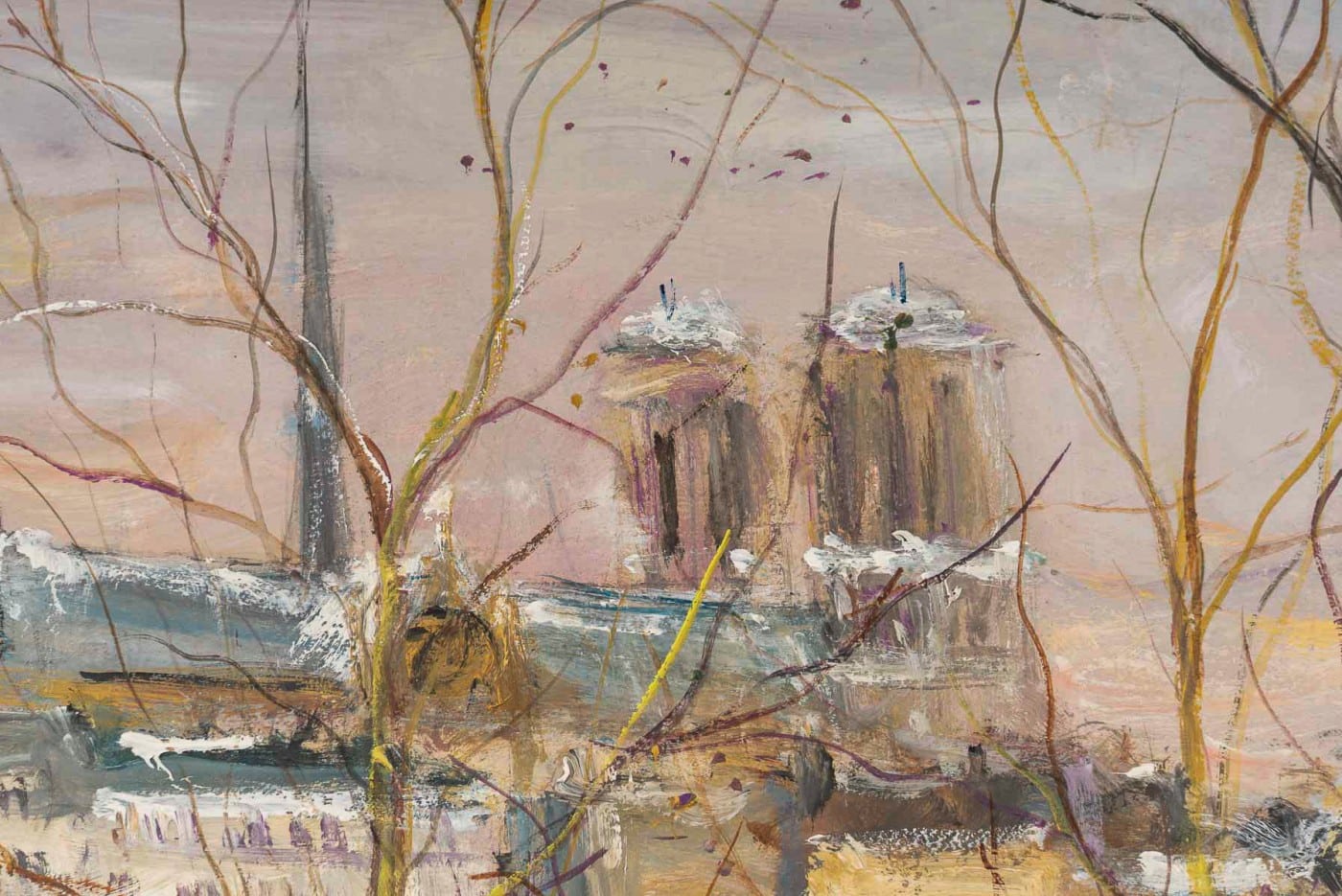Serge Belloni (1925-2005) – Vue panoramique du Pont Louis-Philippe, des Quais de Seine et de Notre-Dame sous la neige, huile sur bois vers 1997