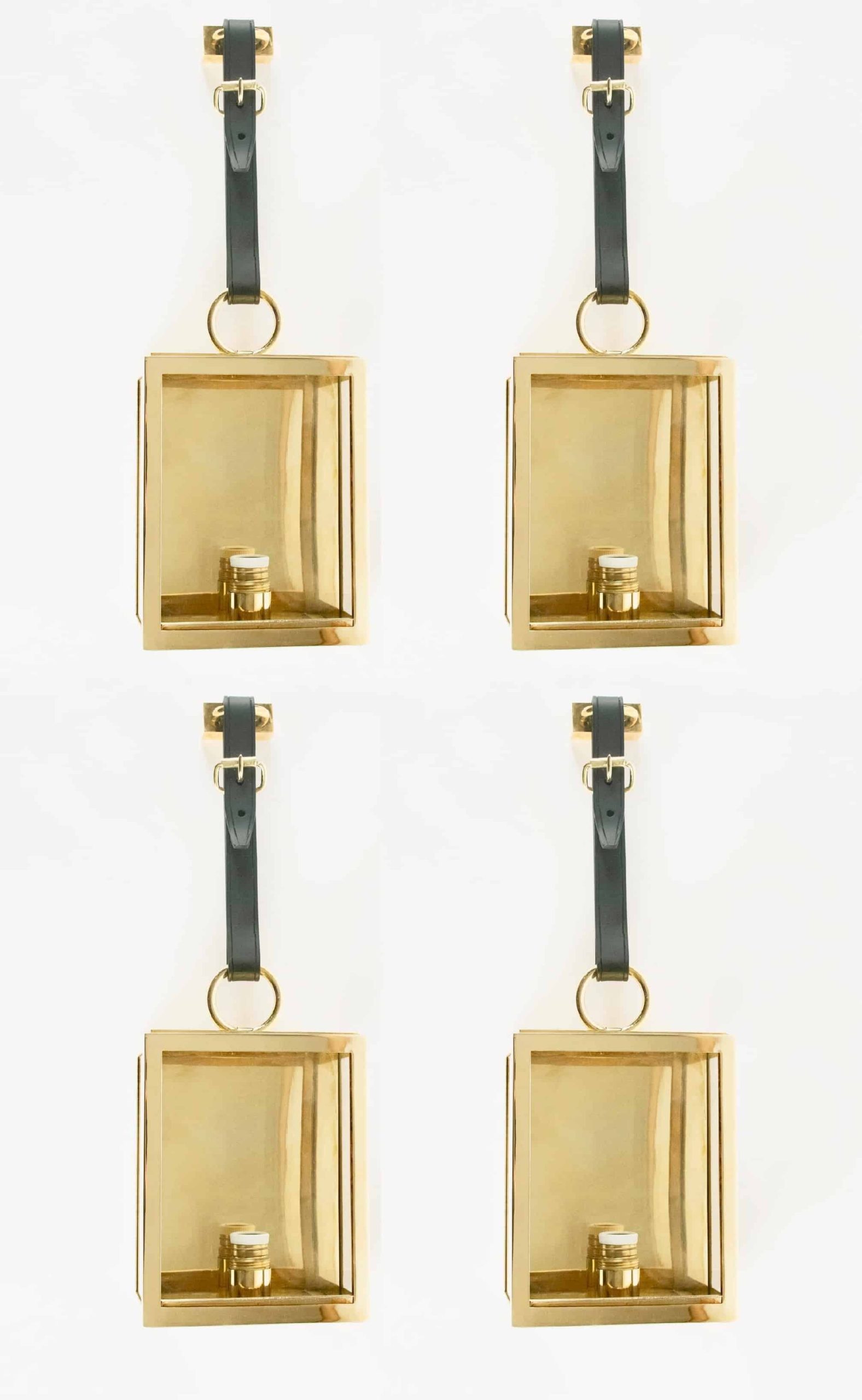 Chaque applique est composée d'une lanterne en laiton poli doré avec 3 fenêtres en verre et un anneau sur le dessus.