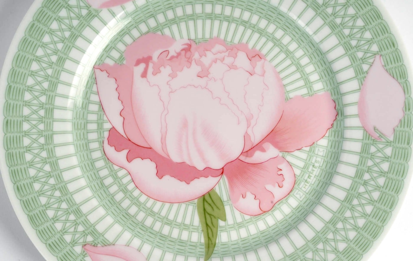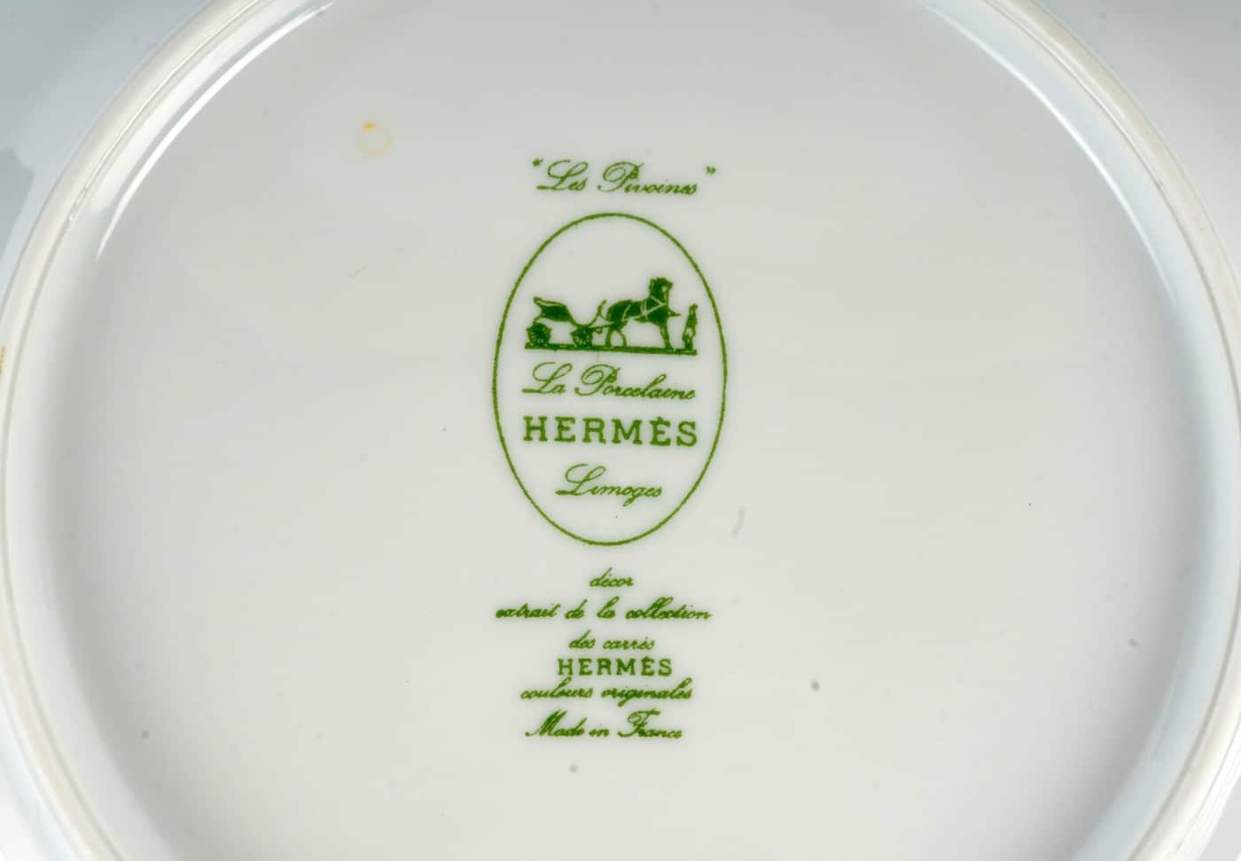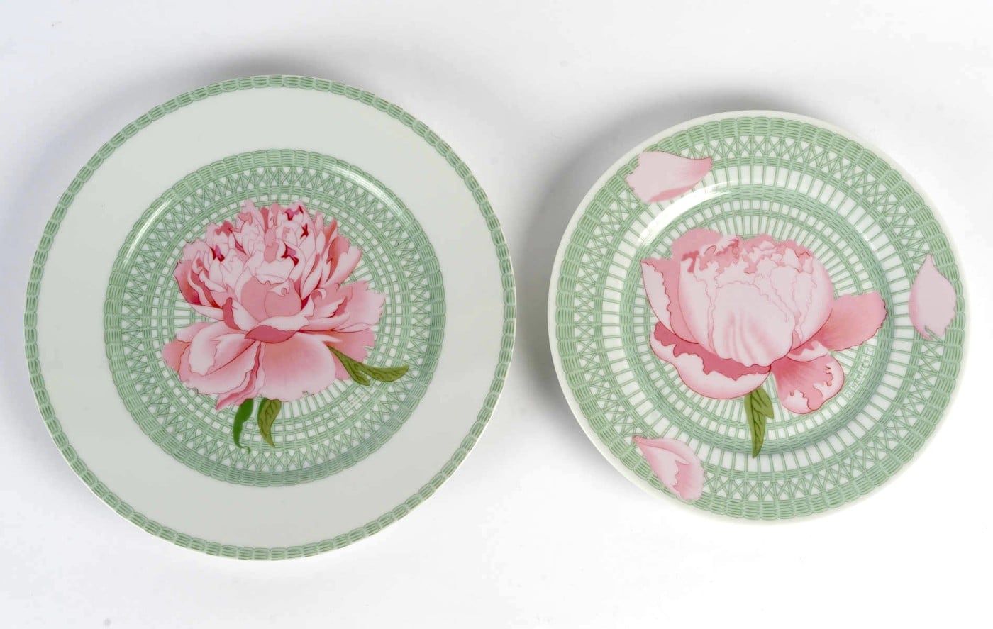 Service de 36 assiettes « Pivoines » en porcelaine créé par Hermès.