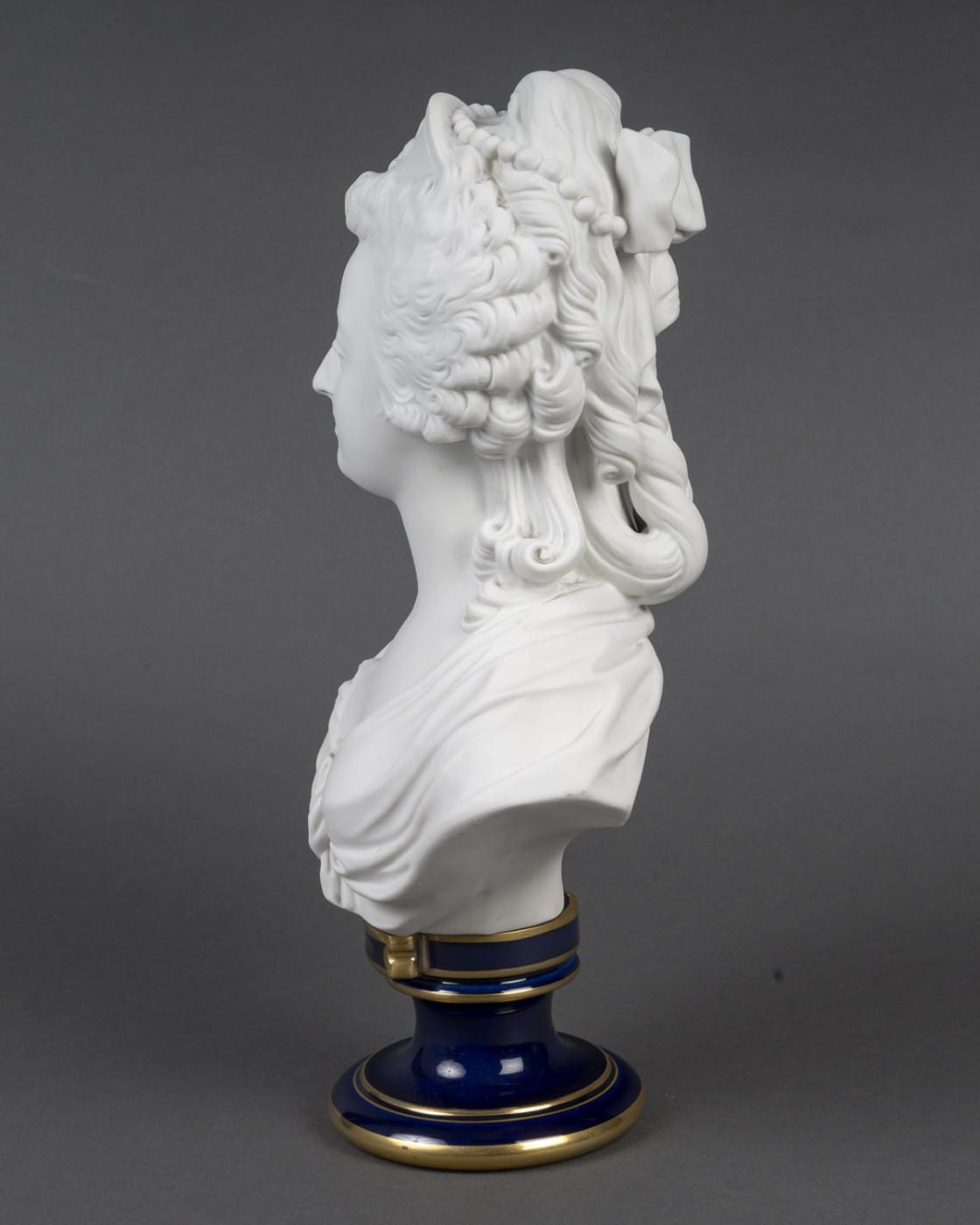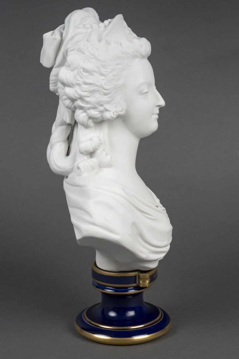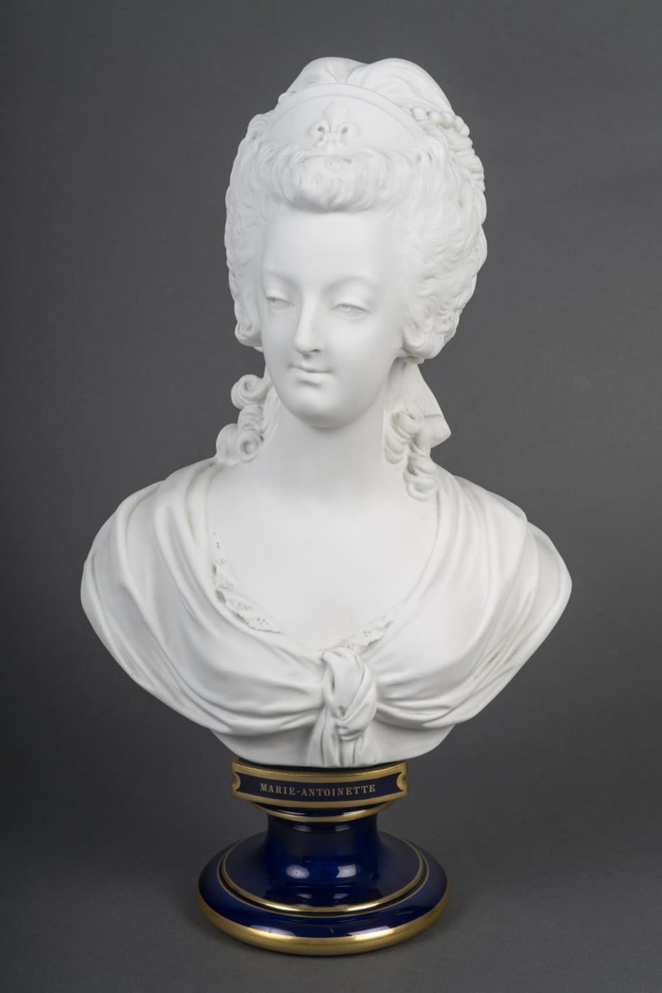 Buste de la reine Marie-Antoinette en biscuit de Sèvres, coiffé d’un diadème figurant une fleur de lys