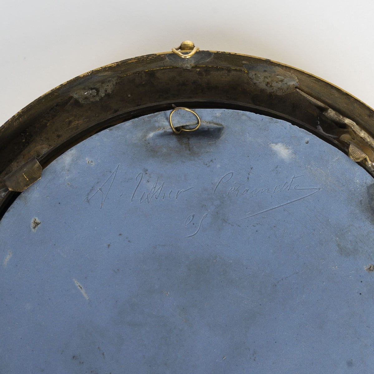 Dans un cadre en laiton doré cerné d’une frise de palmettes.