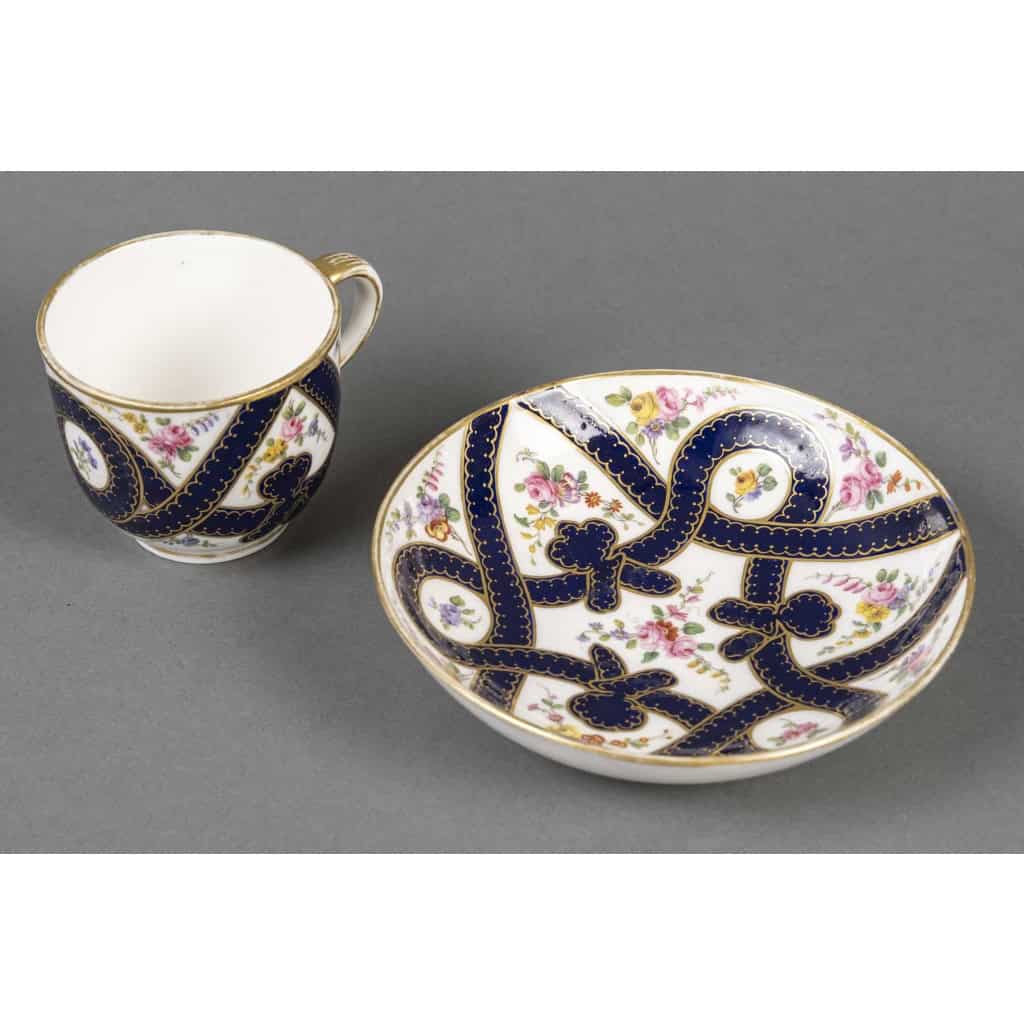 Sèvres  » Gobelet Calabre », Rubans Bleus Et Fleurs Polychromes , 1766