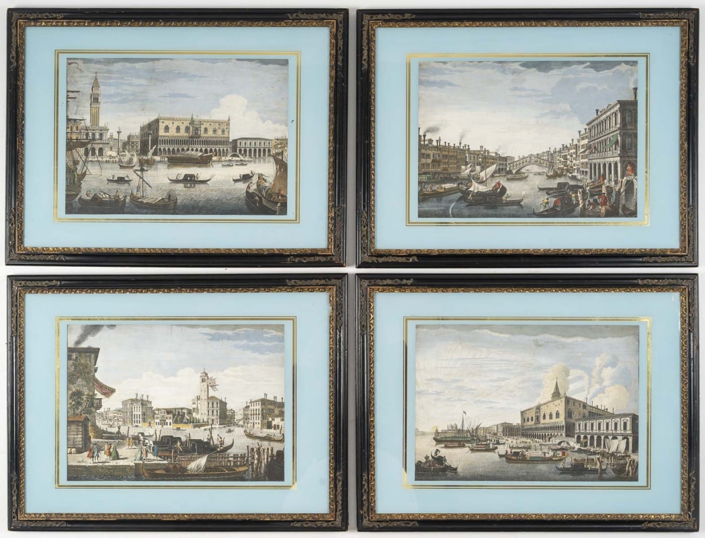 Suite De 4 Estampes Aquarellées De Venise D’après Marieschi