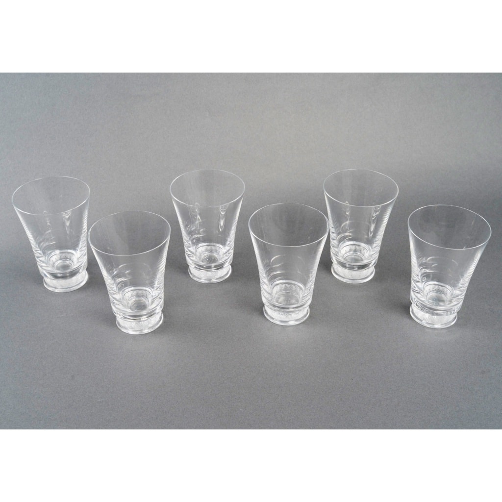 Suite de 6 Gobelets Verres « Reims » en cristal blanc de Lalique France d’après un dessin de René Lalique de 1942.