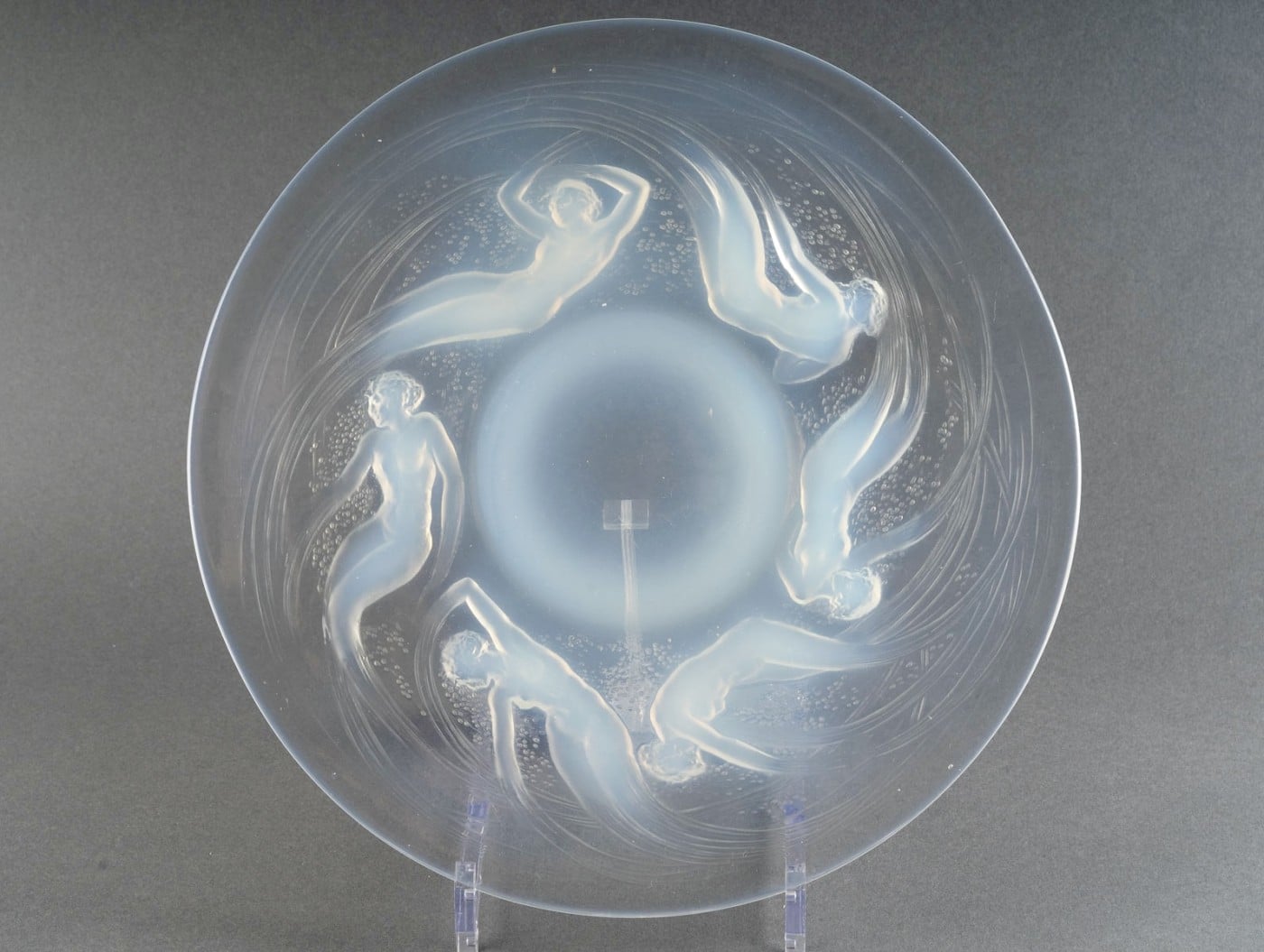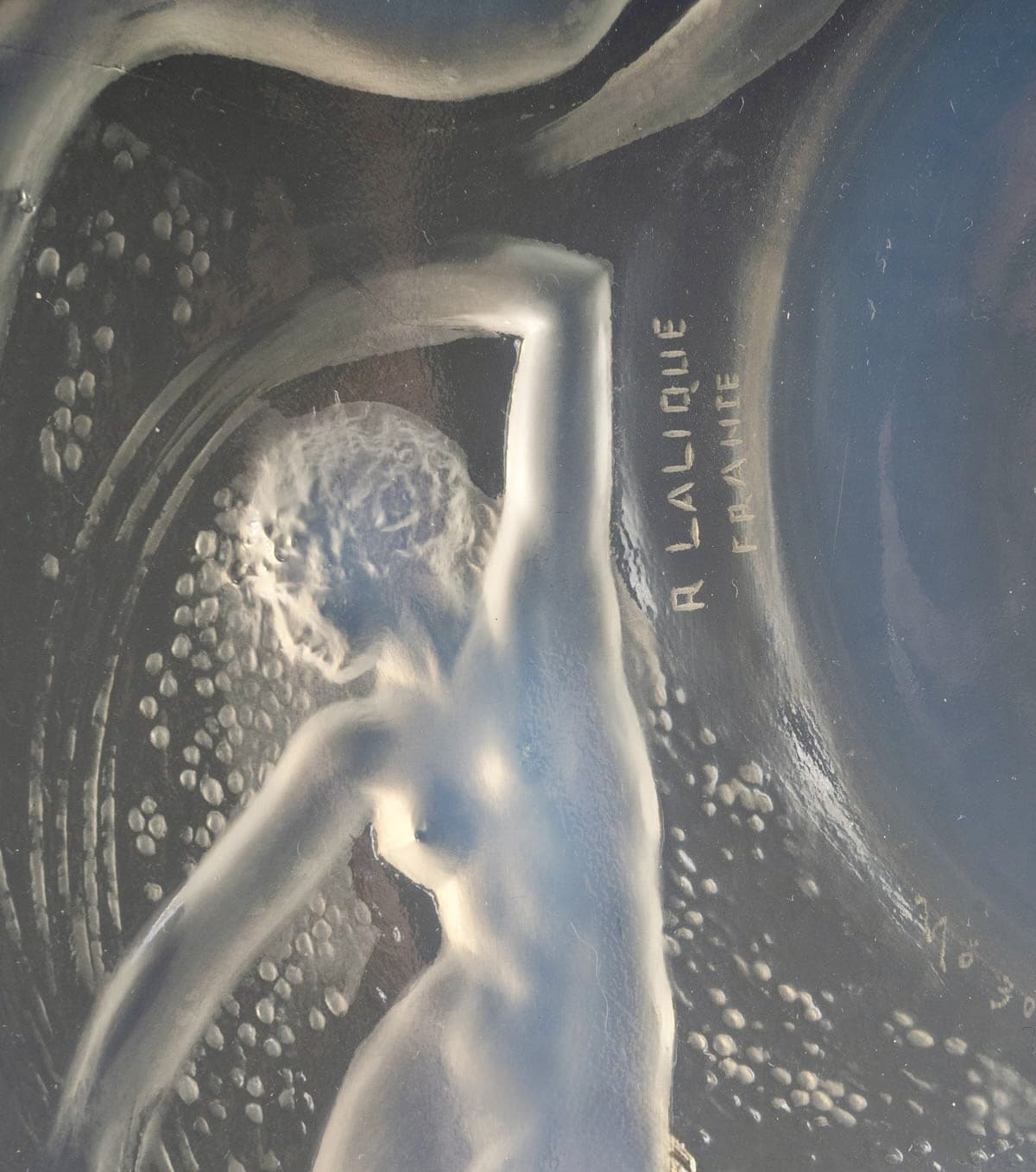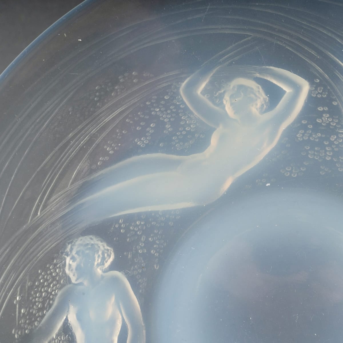 Suite de 6 assiettes « Ondines » en verre opalescent de René Lalique créées en 1921.