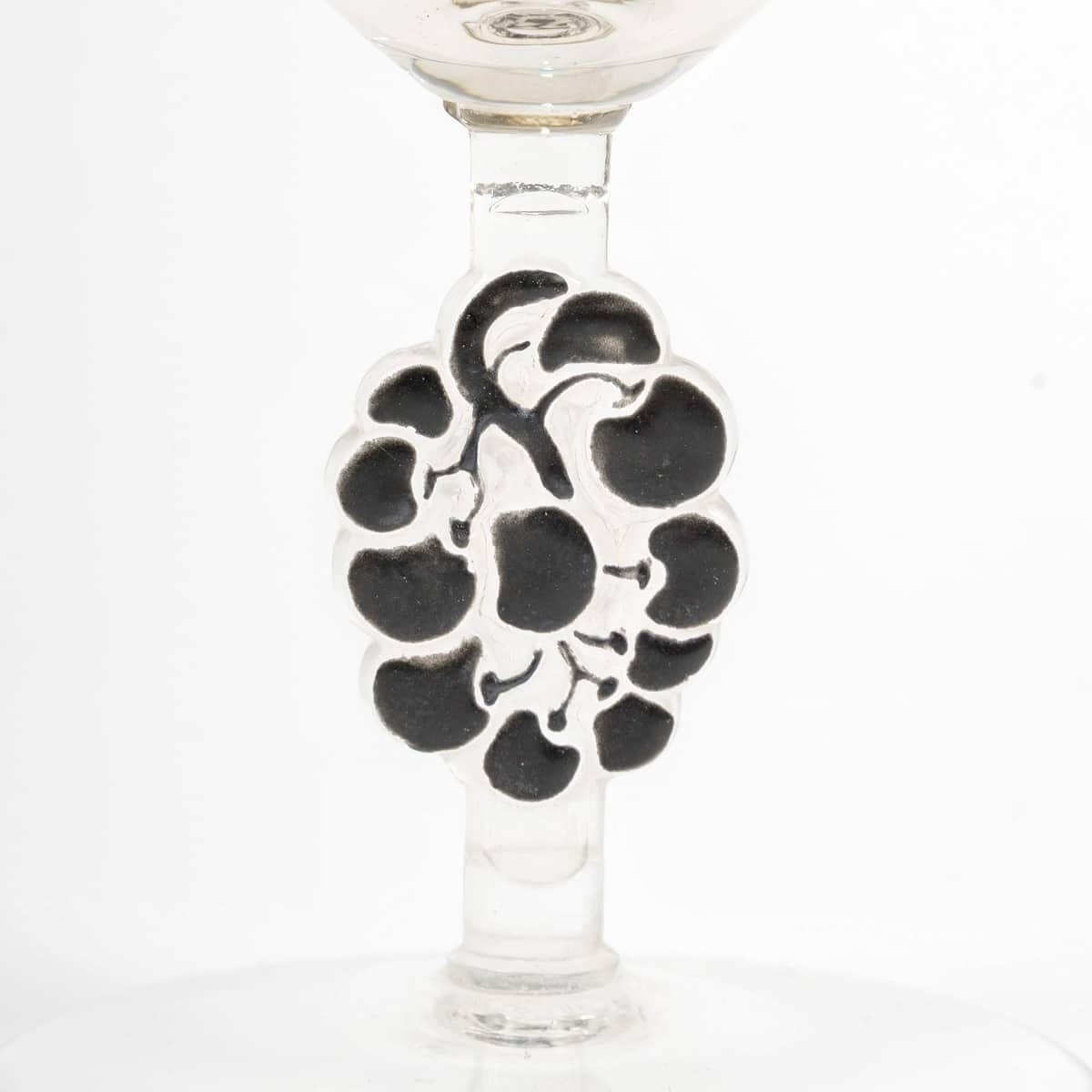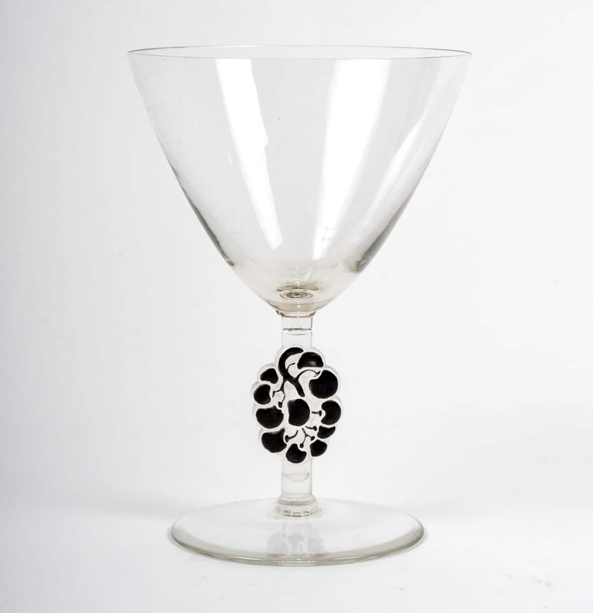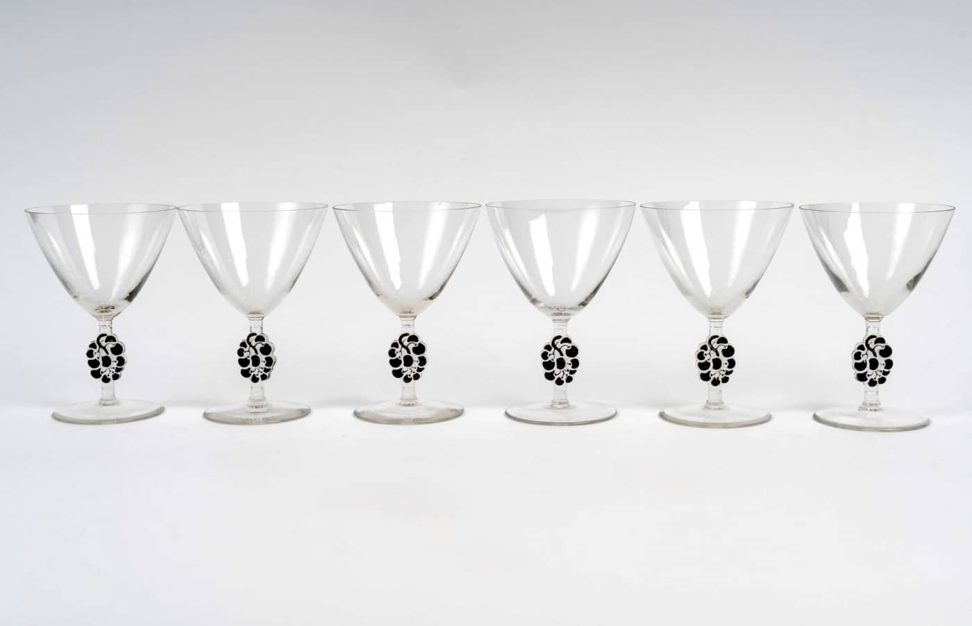 Suite de 6 coupes à champagne « Thionville » en verre blanc émaillé noir d’origineà chaud de René Lalique créés en 1924.