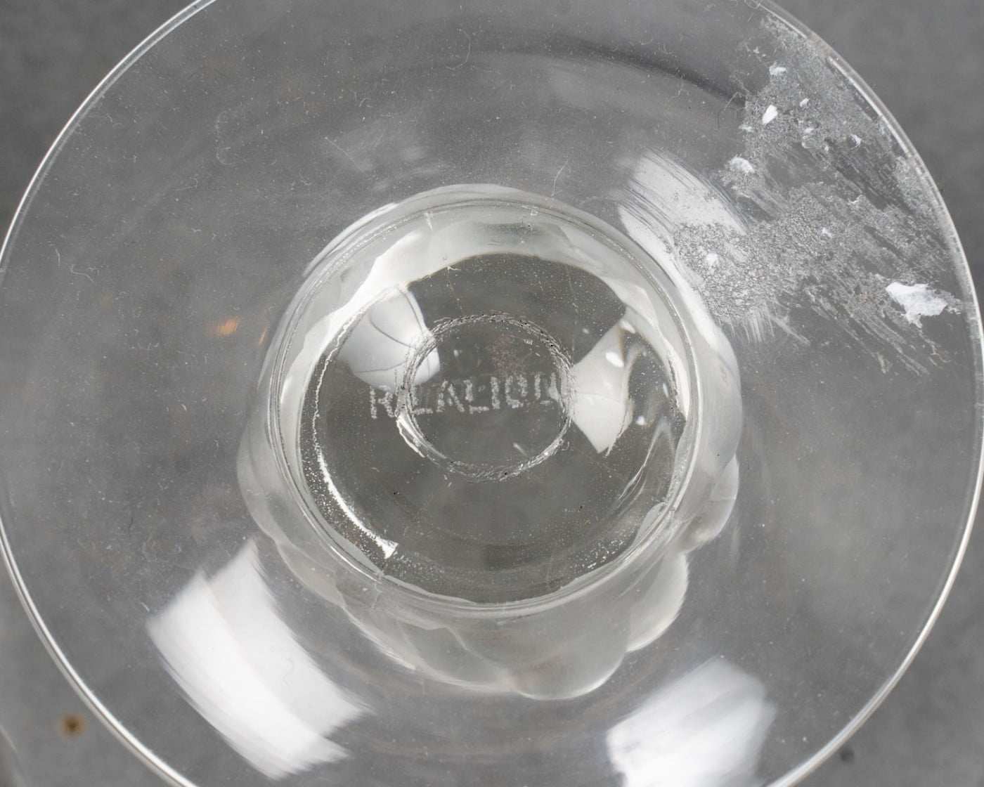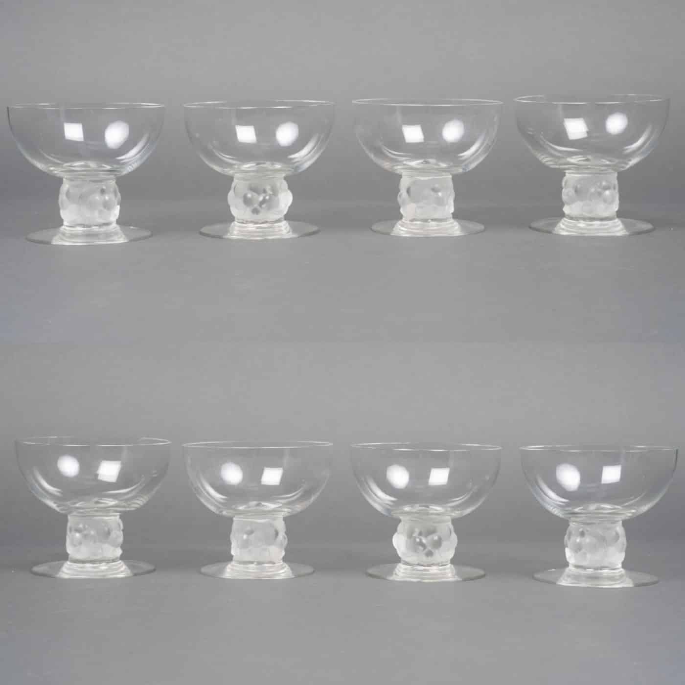 Suite de 8 coupes à champagne « Thoméry » en verre blanc de René Lalique créées en 1931.