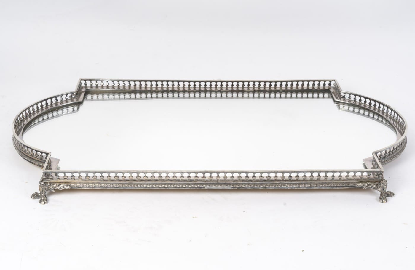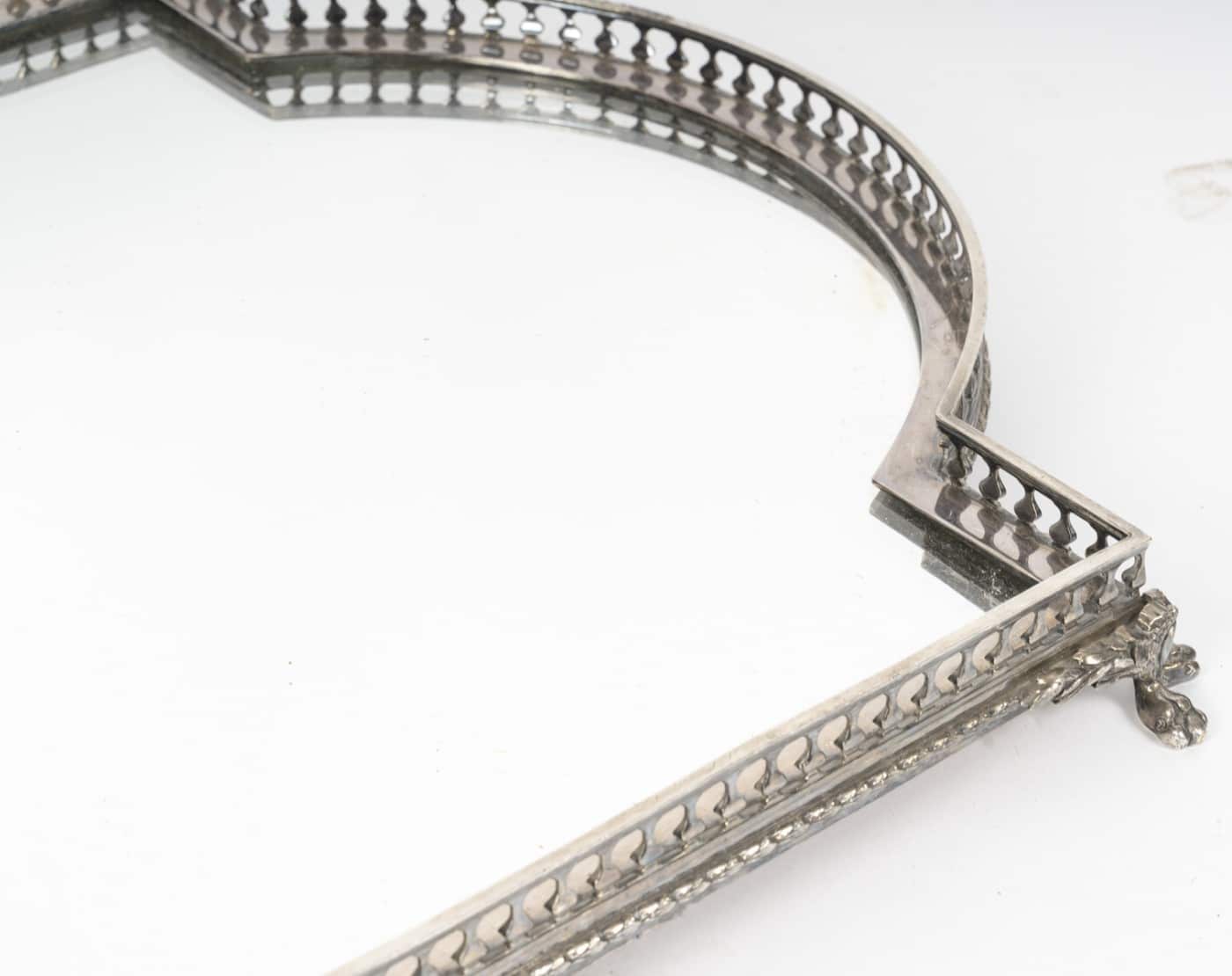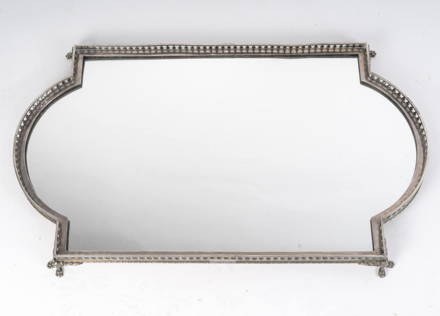 Le surtout présente une galerie ajourée entourant un miroir en parfait état, le tout reposant sur 4 paires de pieds griffes désquels sortent des feuilles de lauriers.