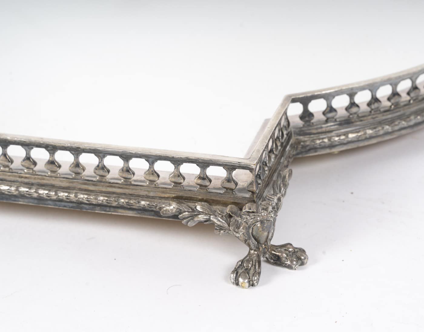 Surtout de table en bronze argenté de forme rectangulaire présentant des arcsà ses extrémités.