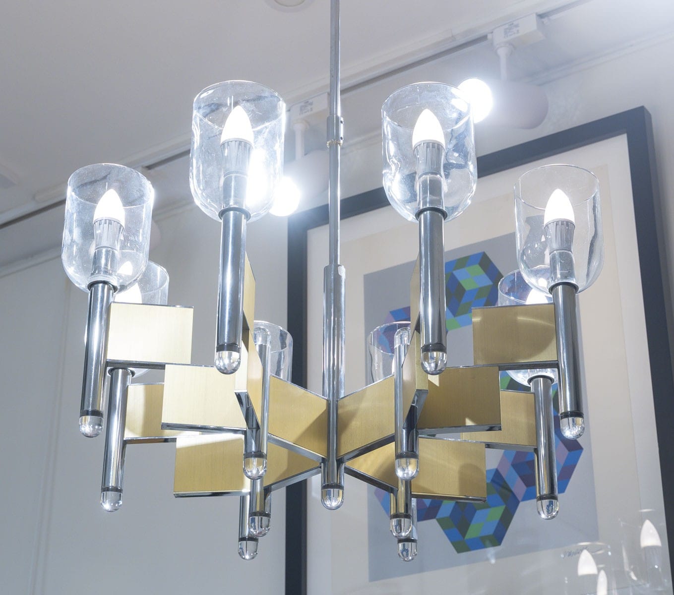 Businessman hors pair, Sciolari est aussi un designer créatif. Tout au long de sa carrière, il a conçu de magnifiques et incroyables luminaires comme la suspension “Mod A5011” (vers 1950), le lampadaire “4079” (1965) et bien sûr le lustre Cubic (années 1970). Angelo Gaetano Sciolari est né en 1927 en Italie. Après avoir obtenu son diplôme à la faculté d’architecture, le jeune homme revient à sa première passion : le cinéma, et notamment la réalisation de films. Cependant, après le décès de son père en 1949, Sciolari n’a d’autre choix que de reprendre l’entreprise familiale de production de luminaires. En seulement quelques années le designer transforme l’entreprise et la propulse sur la scène internationale. L’éditeur Sciolari devient le 1er vendeur italien de luminaires aux États-Unis (produits importés par America by Lightolier & Progress Lighting) ! Les créations de Sciolari ont même été aperçues dans la célèbre série Dallas ! Gaetano est non seulement un brillant entrepreneur mais il est aussi un designer prolifique et talentueux. Il a travaillé pour les grands noms du design comme Stilnovo, Boulanger et Stilkronen.