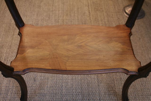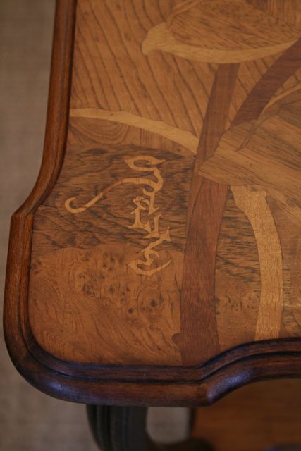 Jolie table à thé de Gallé à décor d aromes  en marquèterie de différentes essences de bois.