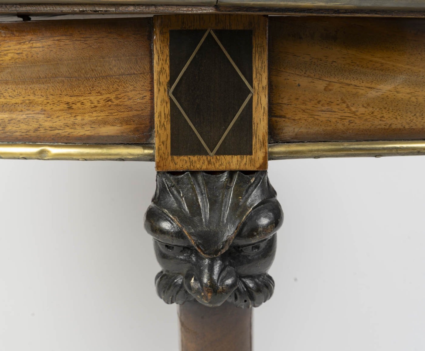 Les pieds sont garnis de tête d’aigle sous la ceinture et de griffe. Il porte un marbre dit « brèche d’Alep ».