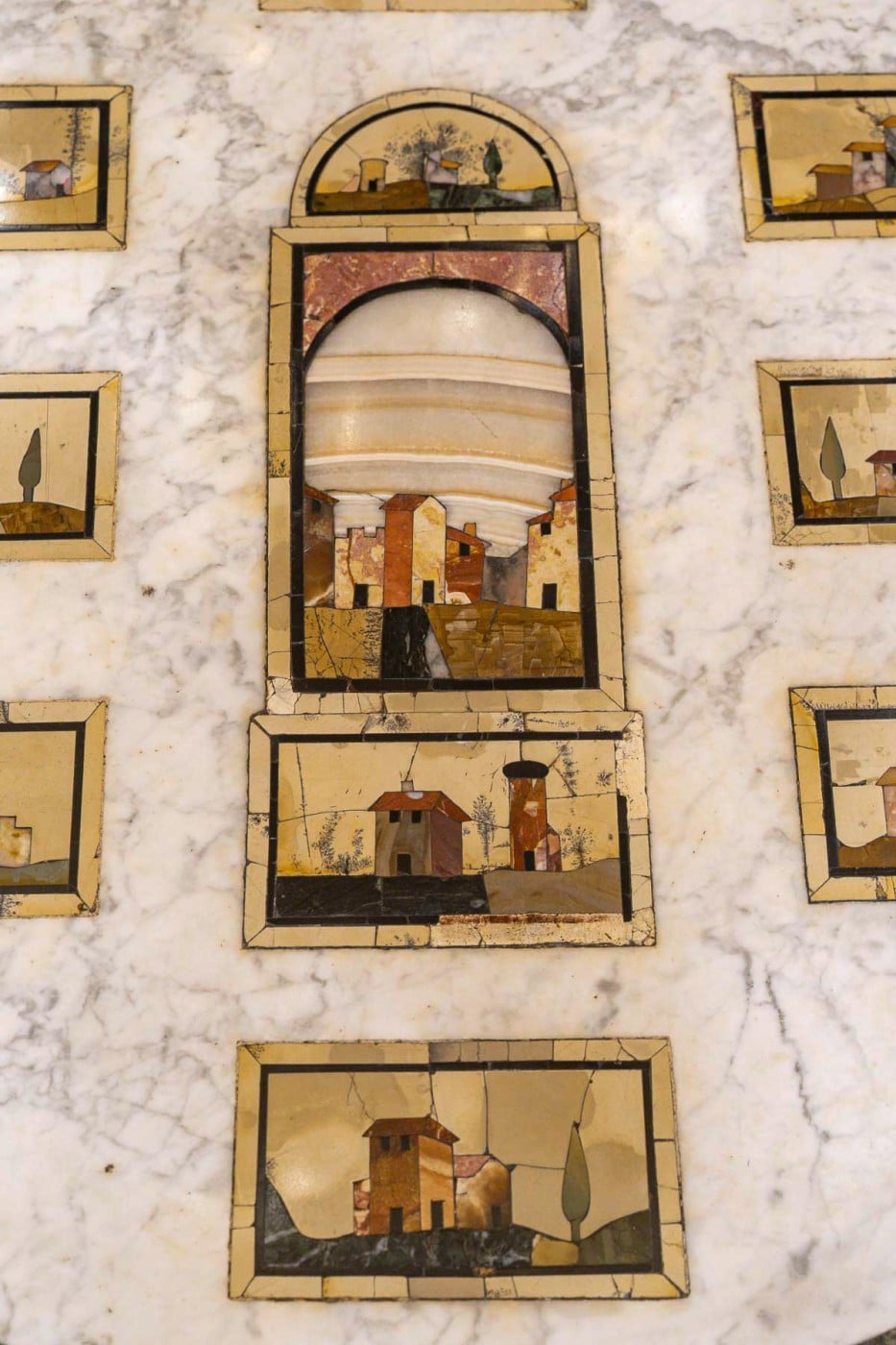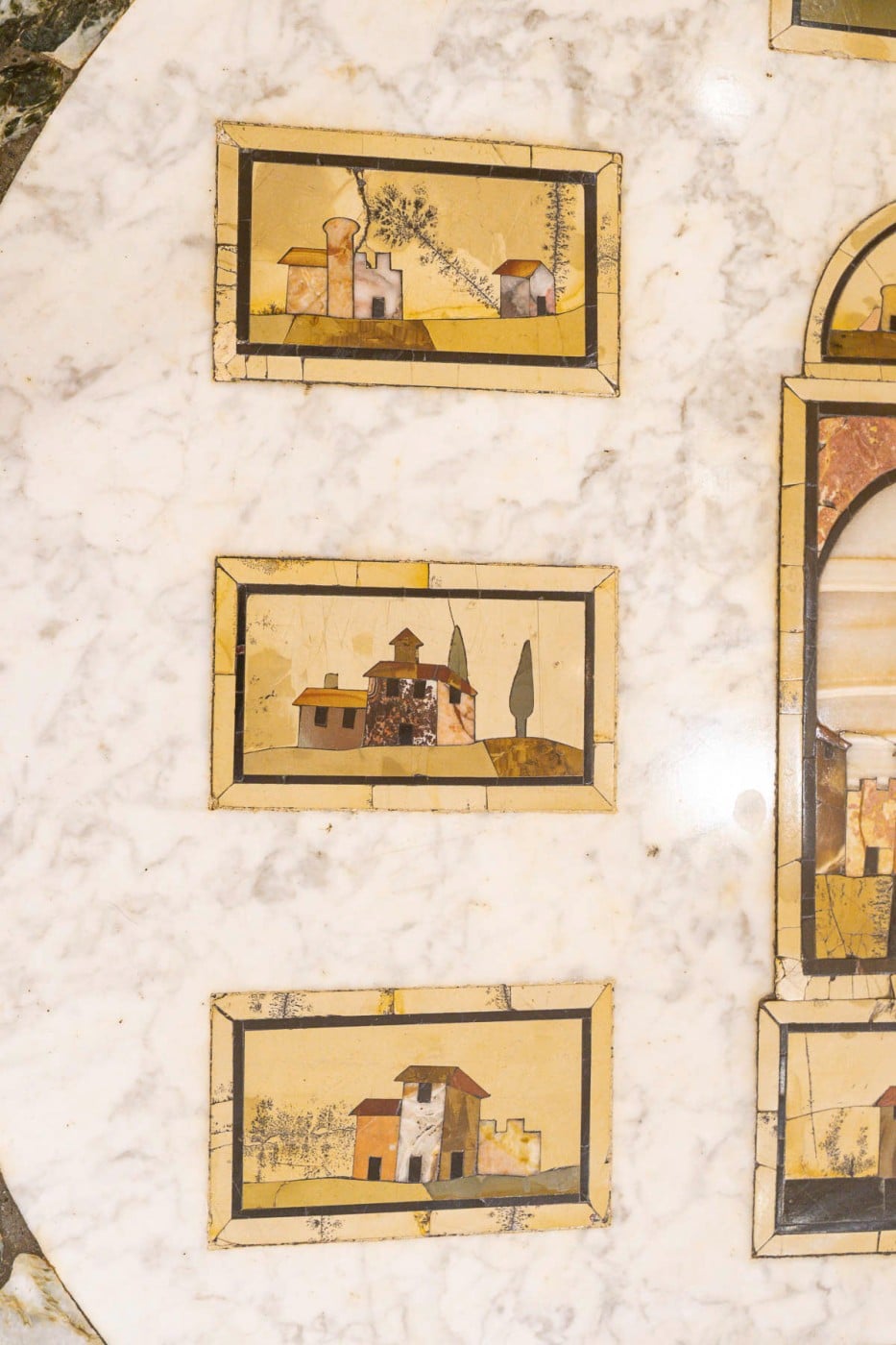 Ce guéridon, réalisé vers 1810 à Florence, illustre le génie artisanal toscan pour les marqueteries de marbres et de pierres dures. Pour en apprécier toute la richesse, une visite au Musée de la Manufacture des pierres dures de Florence ou au Palazzo Pitti s’impose : ces lieux révèlent l’héritage et la maîtrise des artisans florentins dans cet art délicat.
