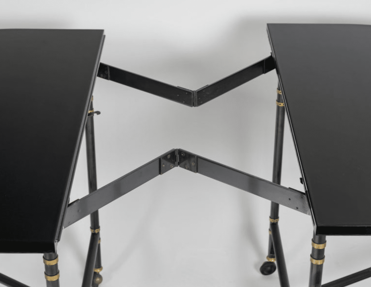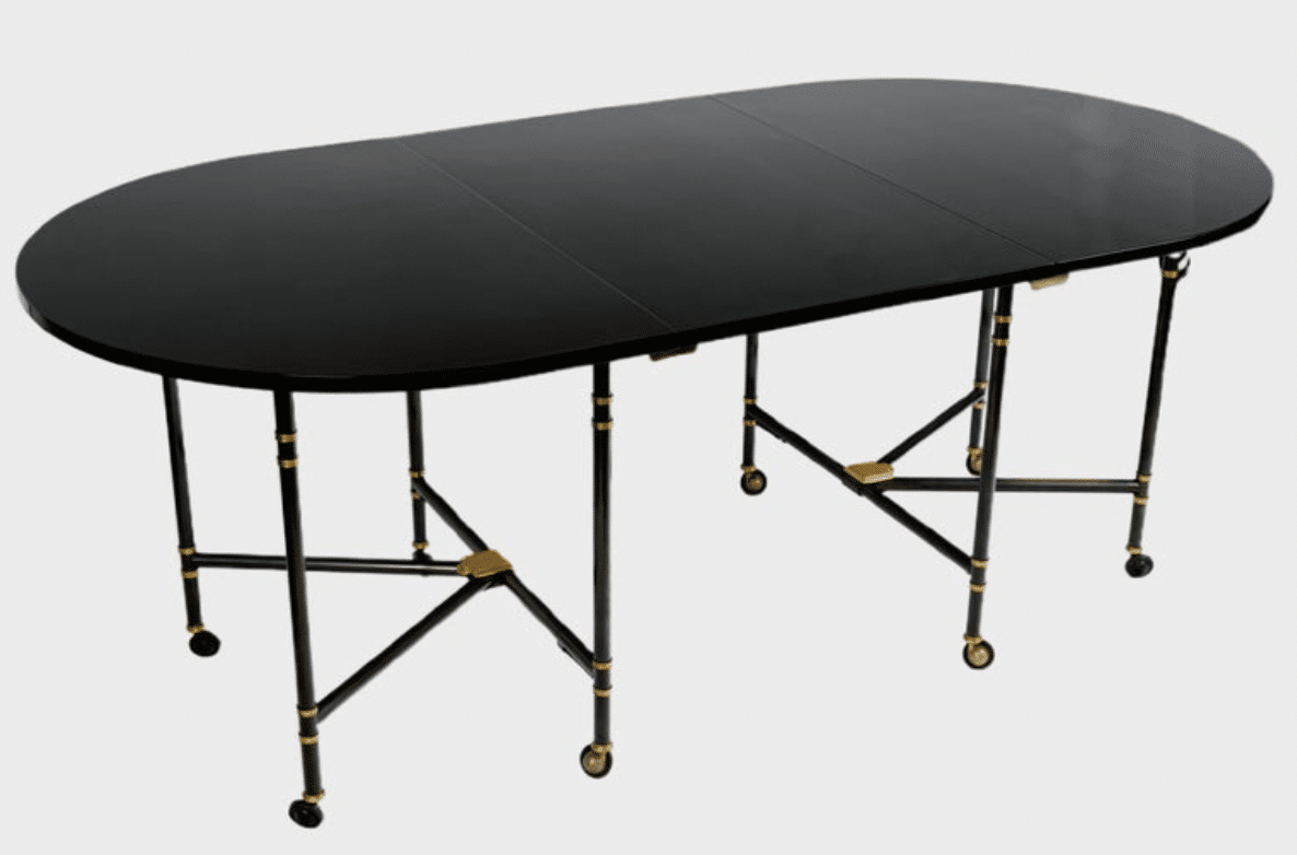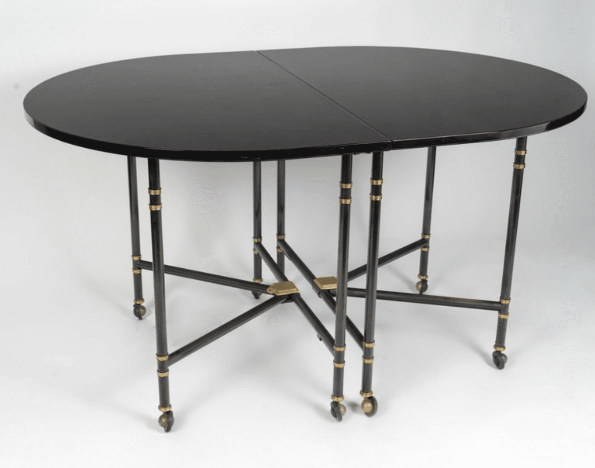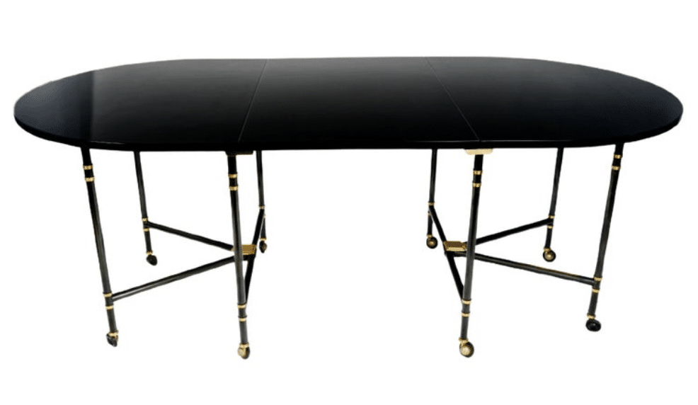 Table avec plateau et rallonge laqués noirs.