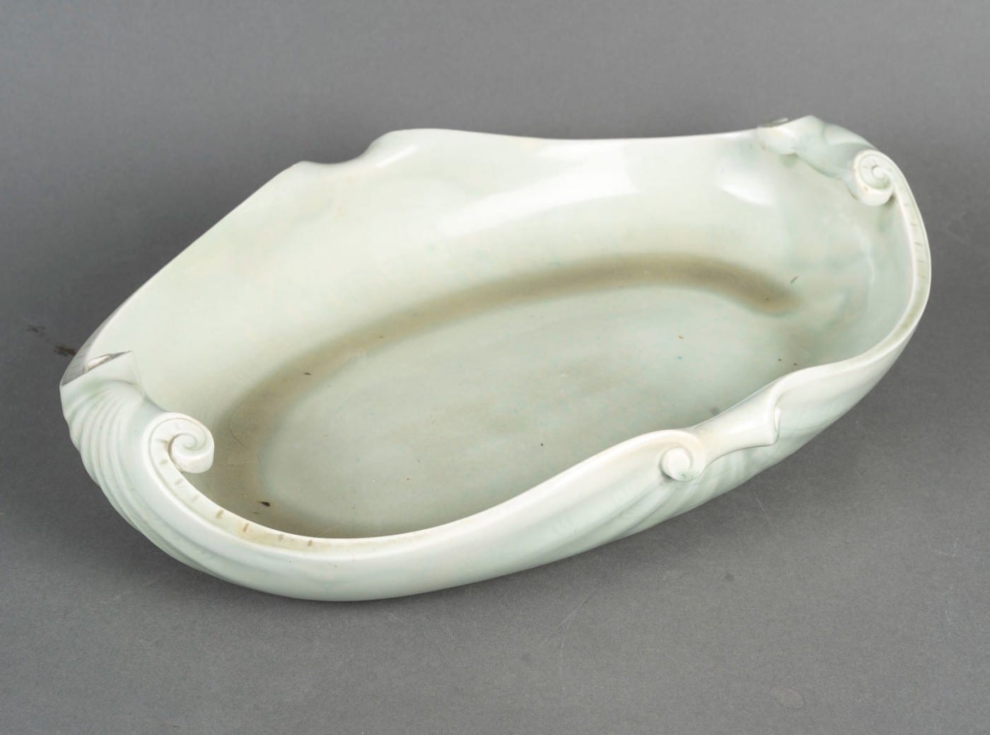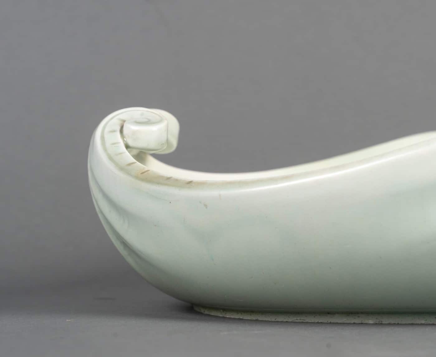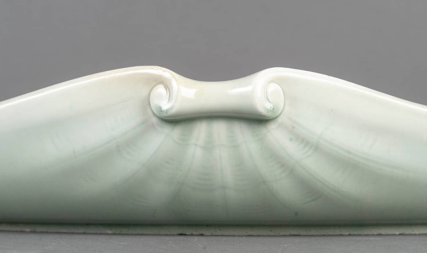 La qualité de l’émail, d’un vert céladon pâle aux légères variations de ton, témoigne de la parfaite maîtrise technique de Théodore Deck, célèbre pour avoir réinventé au XIXᵉ siècle les glaçures inspirées des céramiques orientales et de la Renaissance italienne.