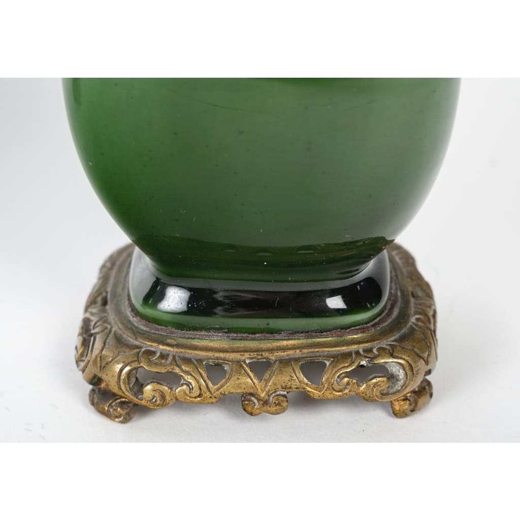 Col cerclé de bronze doré et base à monture quadripode en bronze ouvragé de volutes dans le goût asiatique