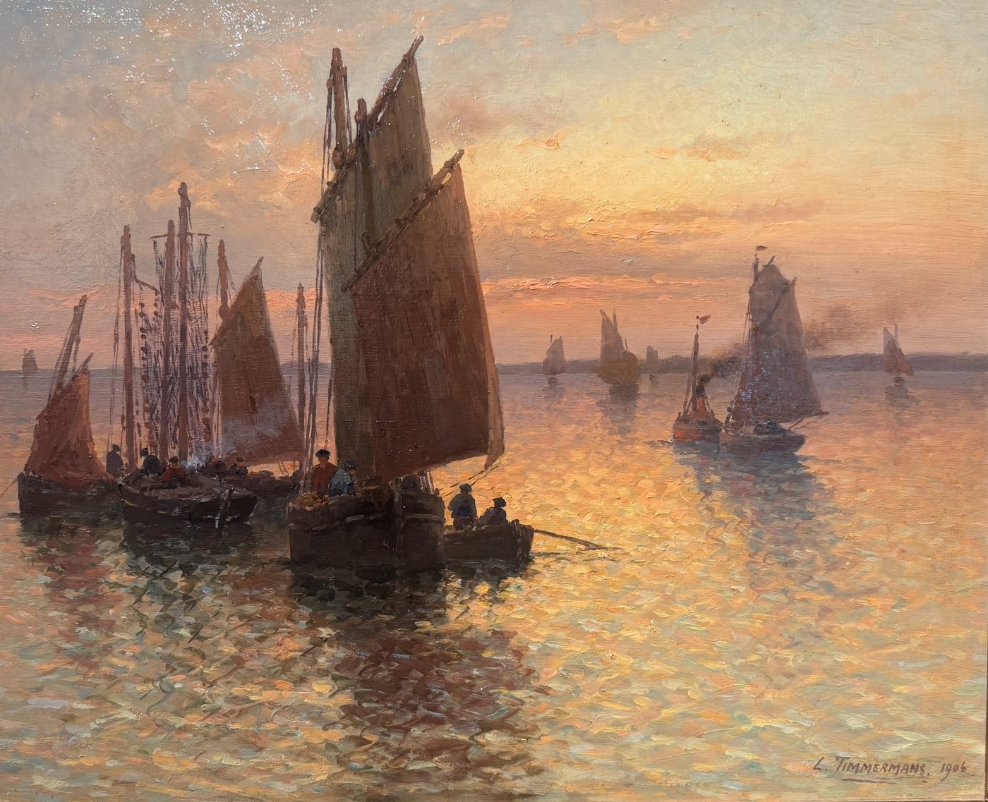 TIMMERMANS Louis Etienne Né en 1846 à Bruxelles / Mort en 1910 à Paris. Peintre de paysages, paysages d’eau, marines, aquarelliste. Louis Etienne TIMMERMANS fut élève de l’Académie de Bruxelles et l’école des Beaux Arts de Paris. Il exposa au Salon des Artistes Français de Paris obtenant une mention honorable en 1904 . Louis Etienne TIMMERMANS a surtout travaillé en France, peignant des marines, des vues de ports et des quais de La Seine à Paris. Louis Etienne TIMMERMANS était particulièrement sensible à l’atmosphère des petits ports de pêche qu’il peint avec un réalisme précis. Louis Etienne TIMMERMANS rapporte d’un séjour en Hollande des paysages ou il fait jouer avec lyrisme la lumière et l’eau.