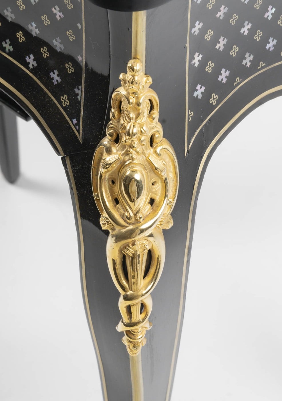 Travail parisien de grande qualité, caractéristique du mobilier de luxe de la seconde moitié du XIXᵉ siècle, illustrant parfaitement le goût éclectique et raffiné de l’époque Napoléon III.