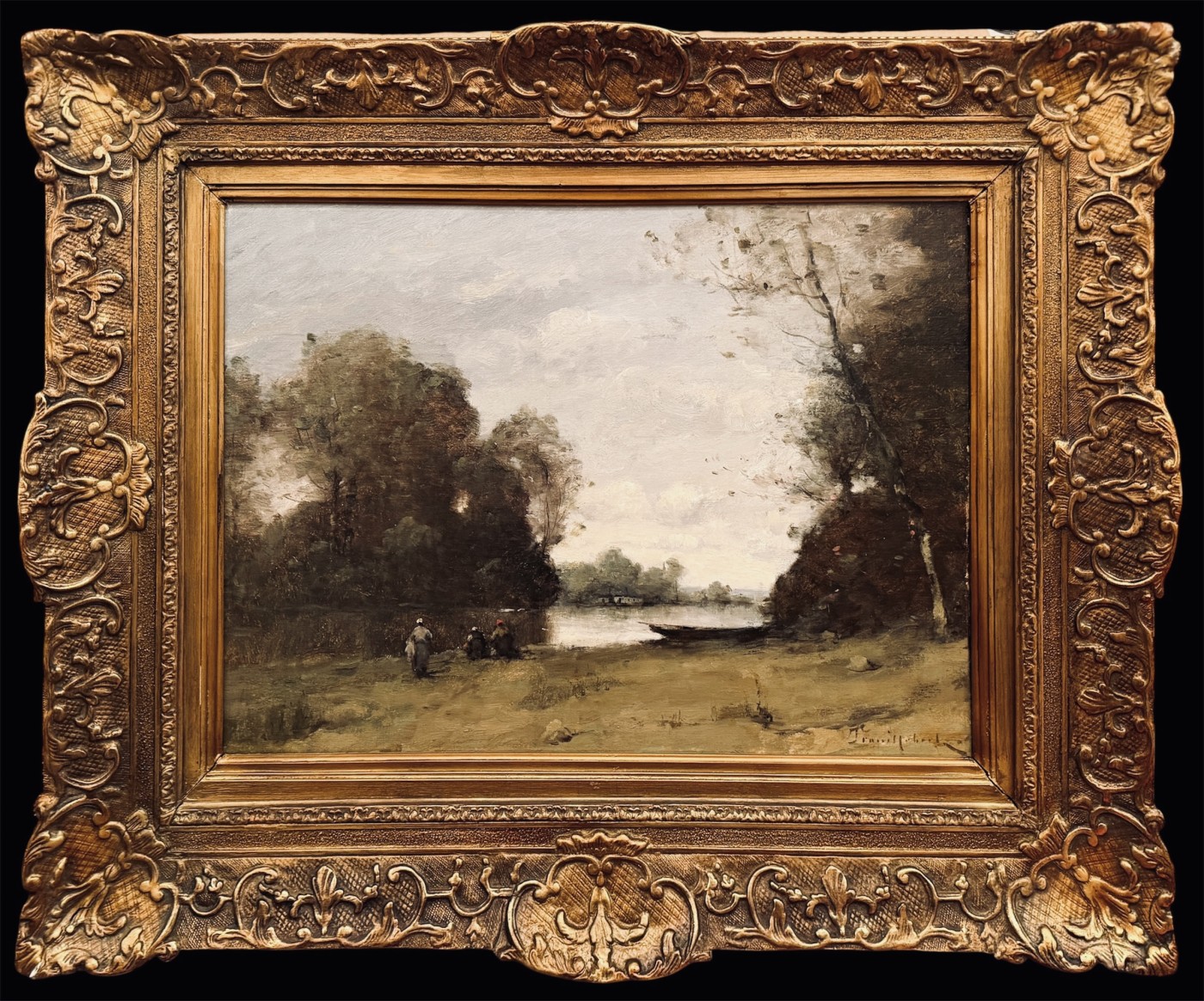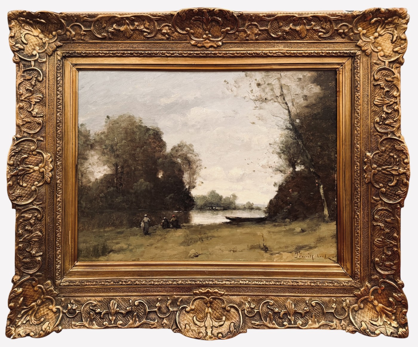 TROUILLEBERT Paul Désiré Né à Paris en 1829 / Mort en 1900 à Paris –Peintre de genre, figures, nus, portraits, paysages –Elève de Hebert et Jallabert, Paul Désiré TROUILLEBERT débute honorablement une carrière de portraitiste, mais sa rencontre avec Corot le convertit si bien au paysage sur nature qu’il ne vit plus désormais que dans l’orbite du maître de Ville-d’Avray, orientant presque exclusivement ses recherches sur le plein air et le rendu de l’atmosphère – Avec franchise, Paul Désiré TROUILLEBERT s’inspirera toute sa vie des mêmes thèmes que Corot : les bords de l’eau au matin et au soleil couchant, les étangs dans la campagne, les arbres et les bois sont autant de sujets qui ne cessent de le séduire – D’un pinceau qui ne manque ni de légèreté, ni de transparence, Paul Désiré TROUILLEBERT s’applique à traduire, dans la gamme grise de son aîné, les valeurs lumineuses et atmosphériques de la nature – Ses peintures ont eu un vif succès auprès du public et conserve un attrait constant -Paul Désiré TROUILLEBERT expose au Salon à partir de 1865