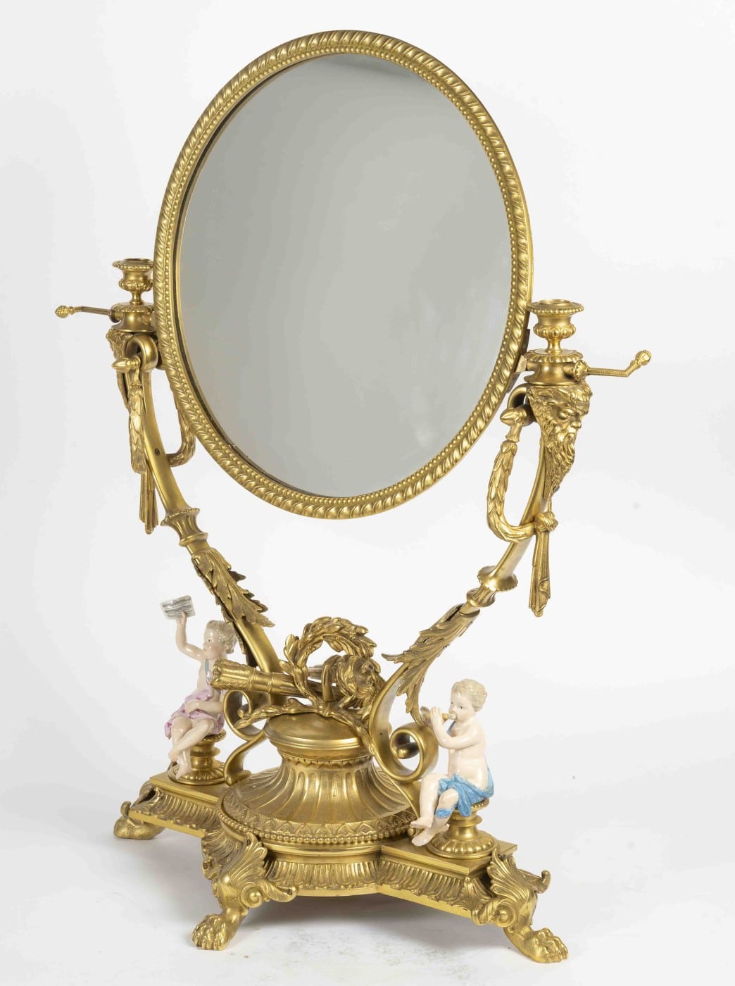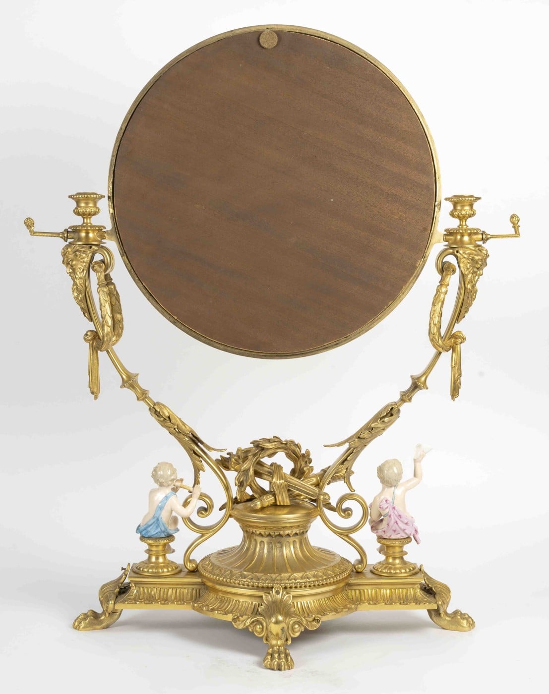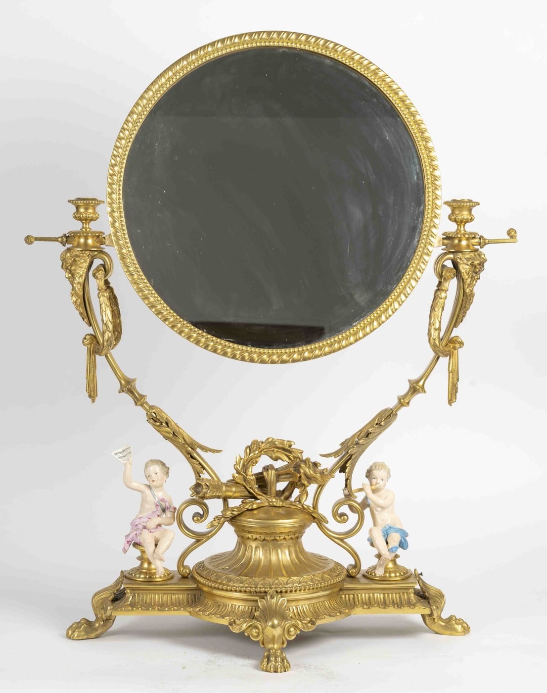 Une riche base circulaire en bronze doré portant un grand miroir rond