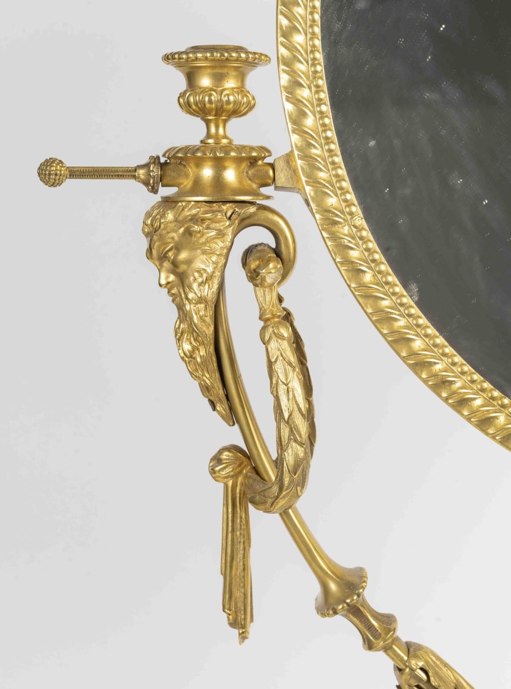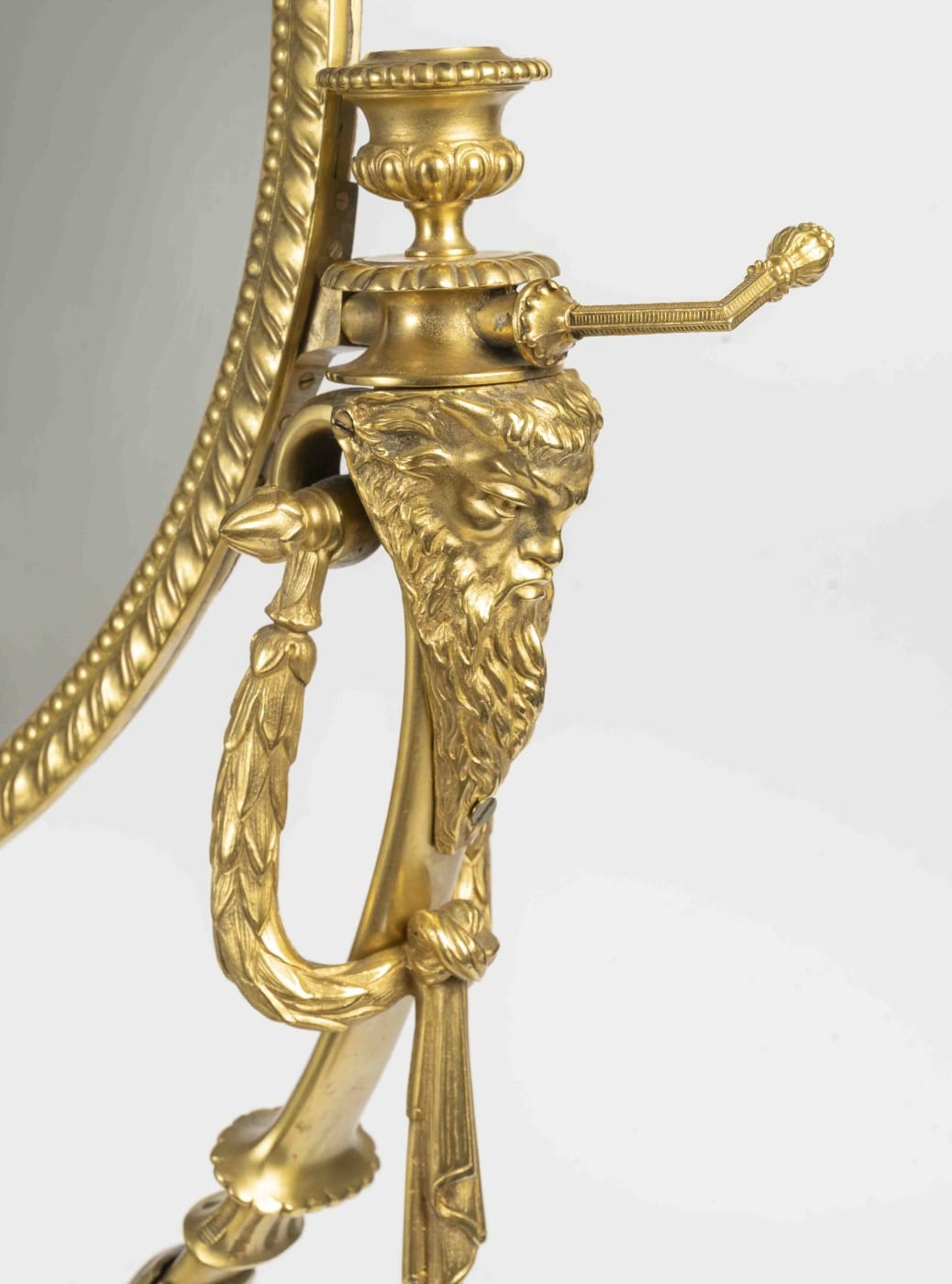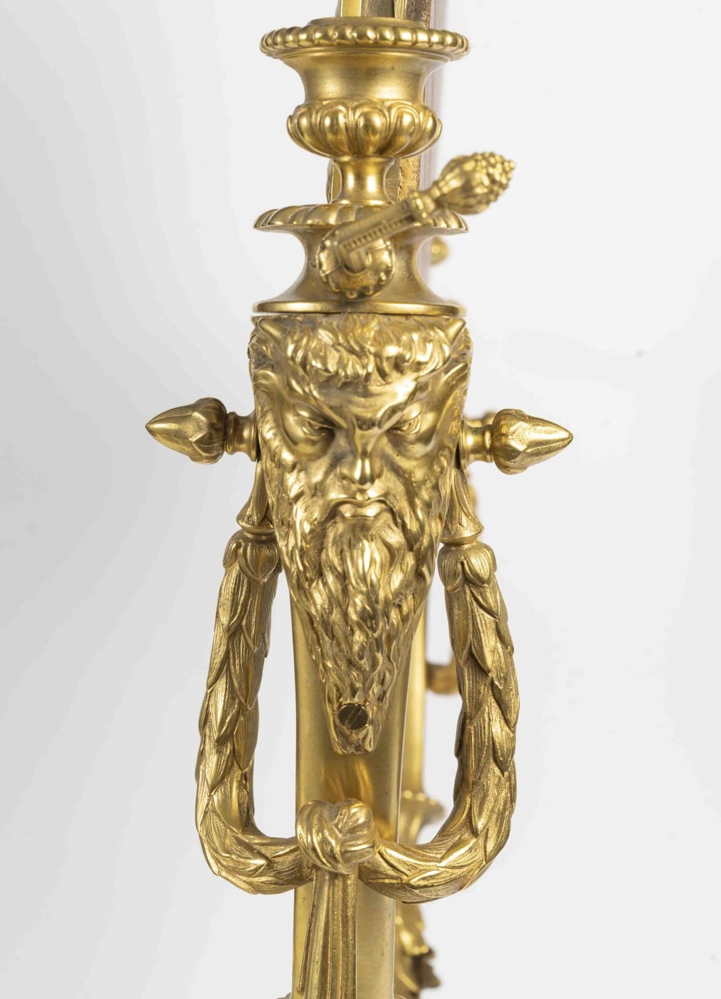 Belle ornementation en bronze doré, masque du veilliard, guirlandes