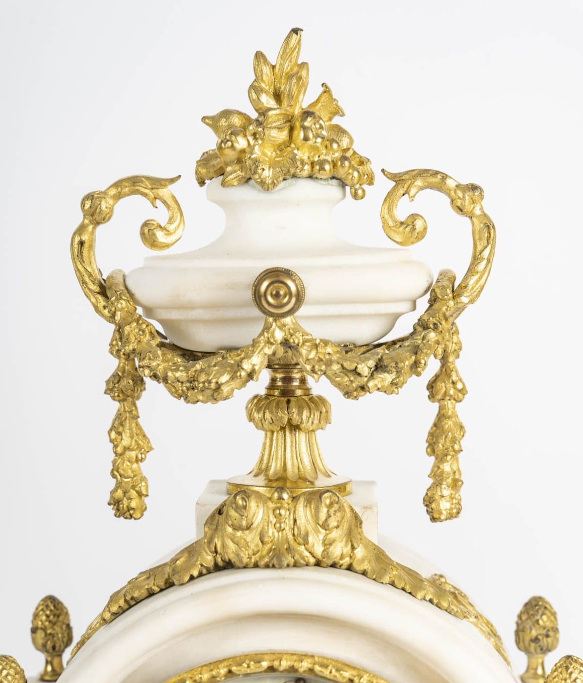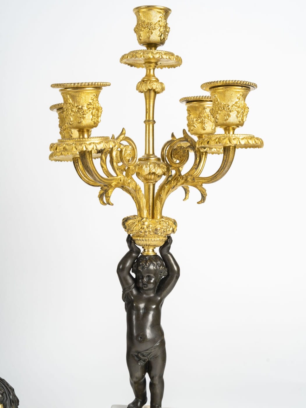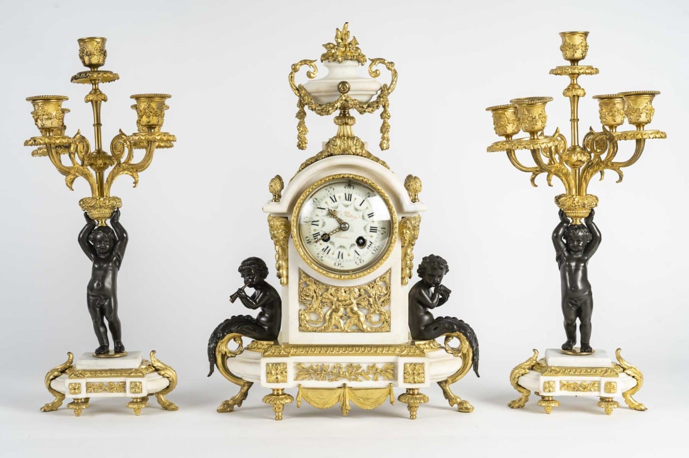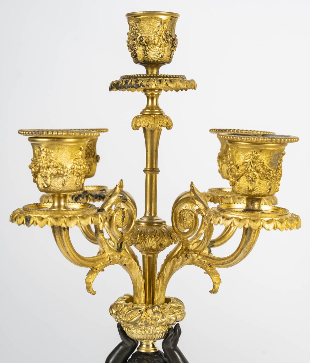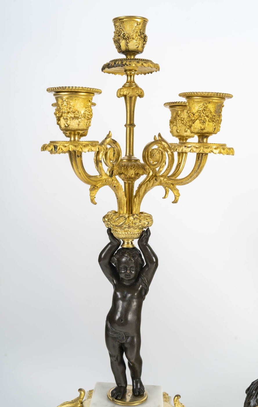 composé d’une pendule et une paire de candélabres a cinq bras de lumières