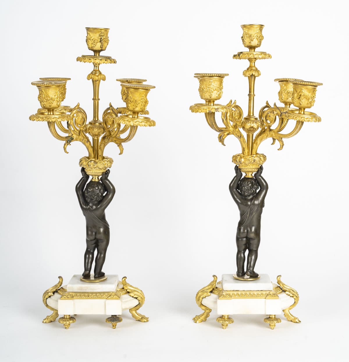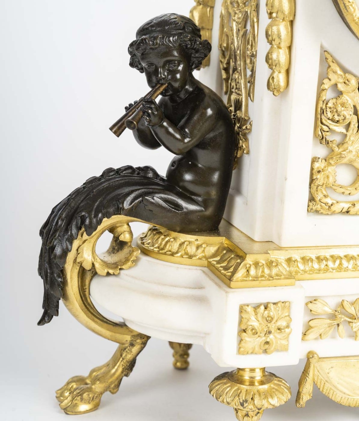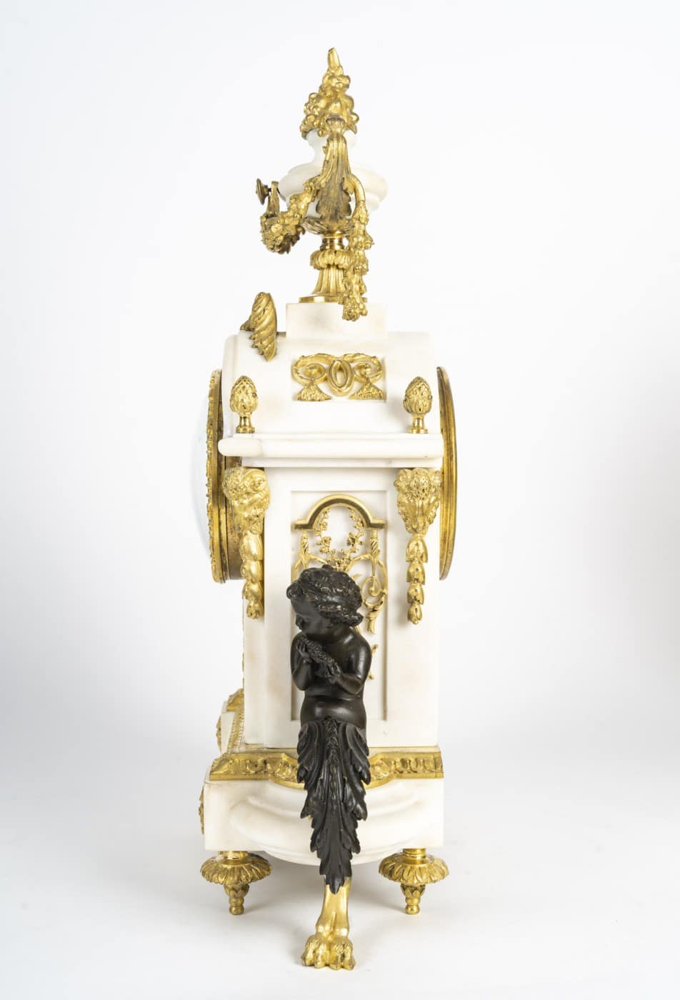 décor d’enfants en ronde bosse portant les bras de lumières et sur les deux coté de la pendule
