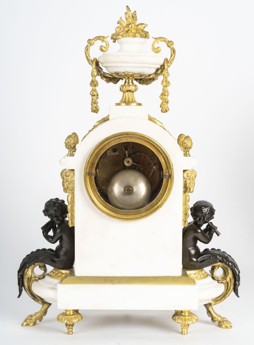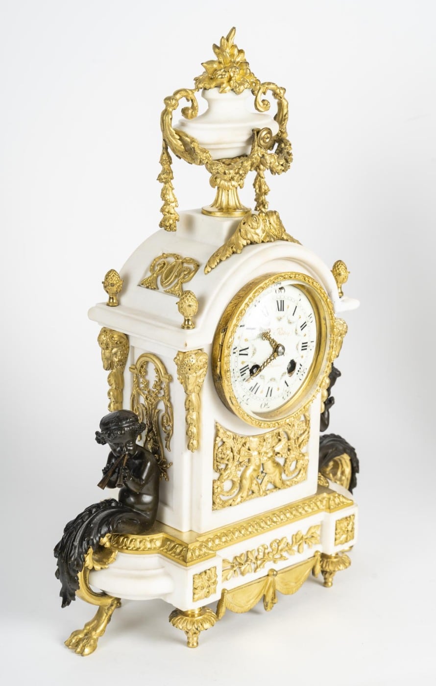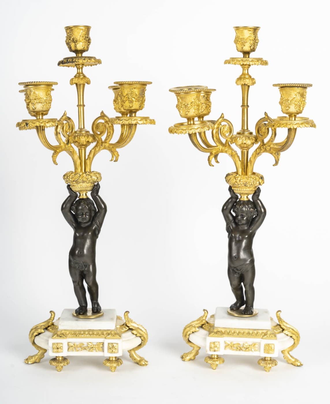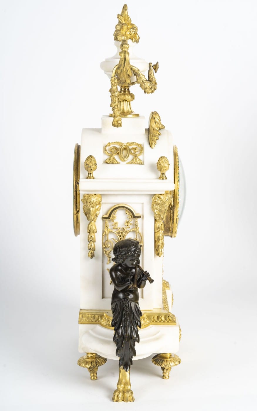 décor d’enfants en ronde bosse portant les bras de lumières et sur les deux coté de la pendule