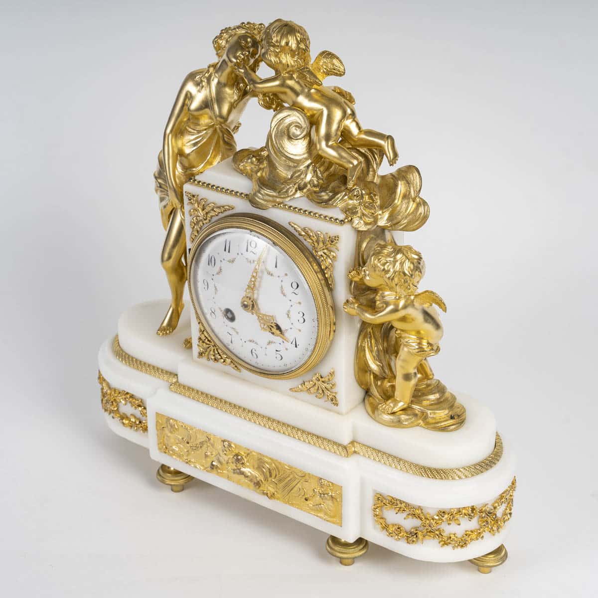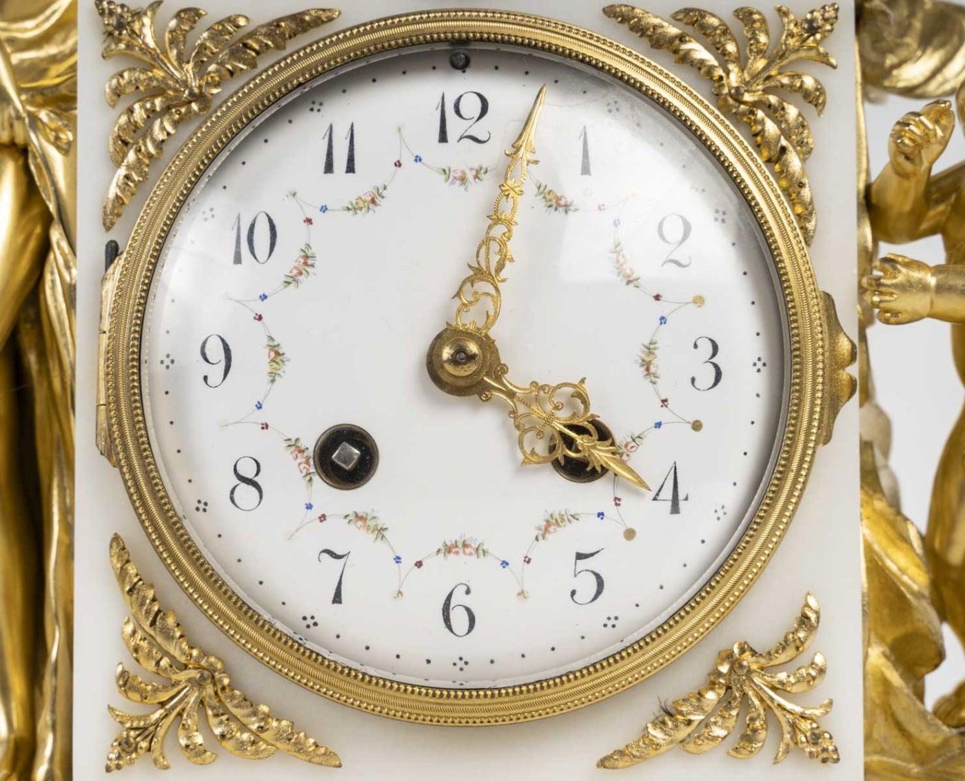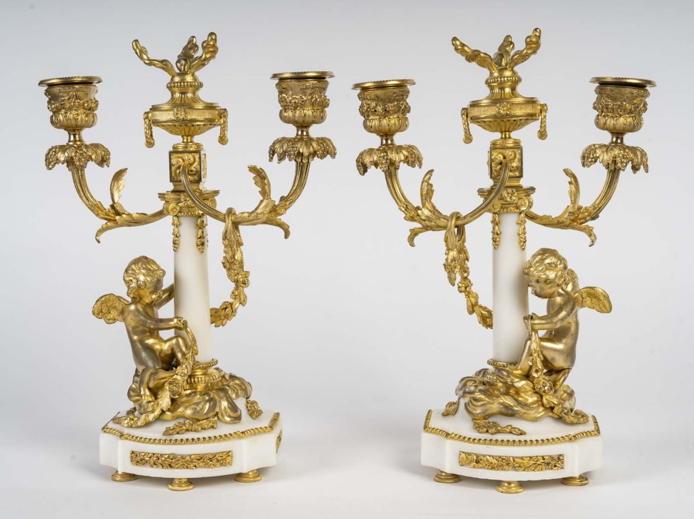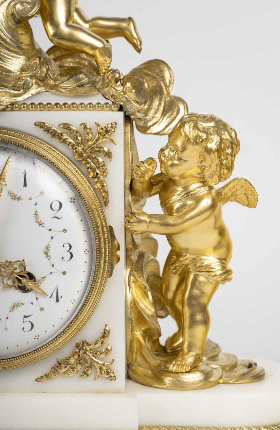 Une belle garniture en bronze doré et marbre blanc de style louis XVI