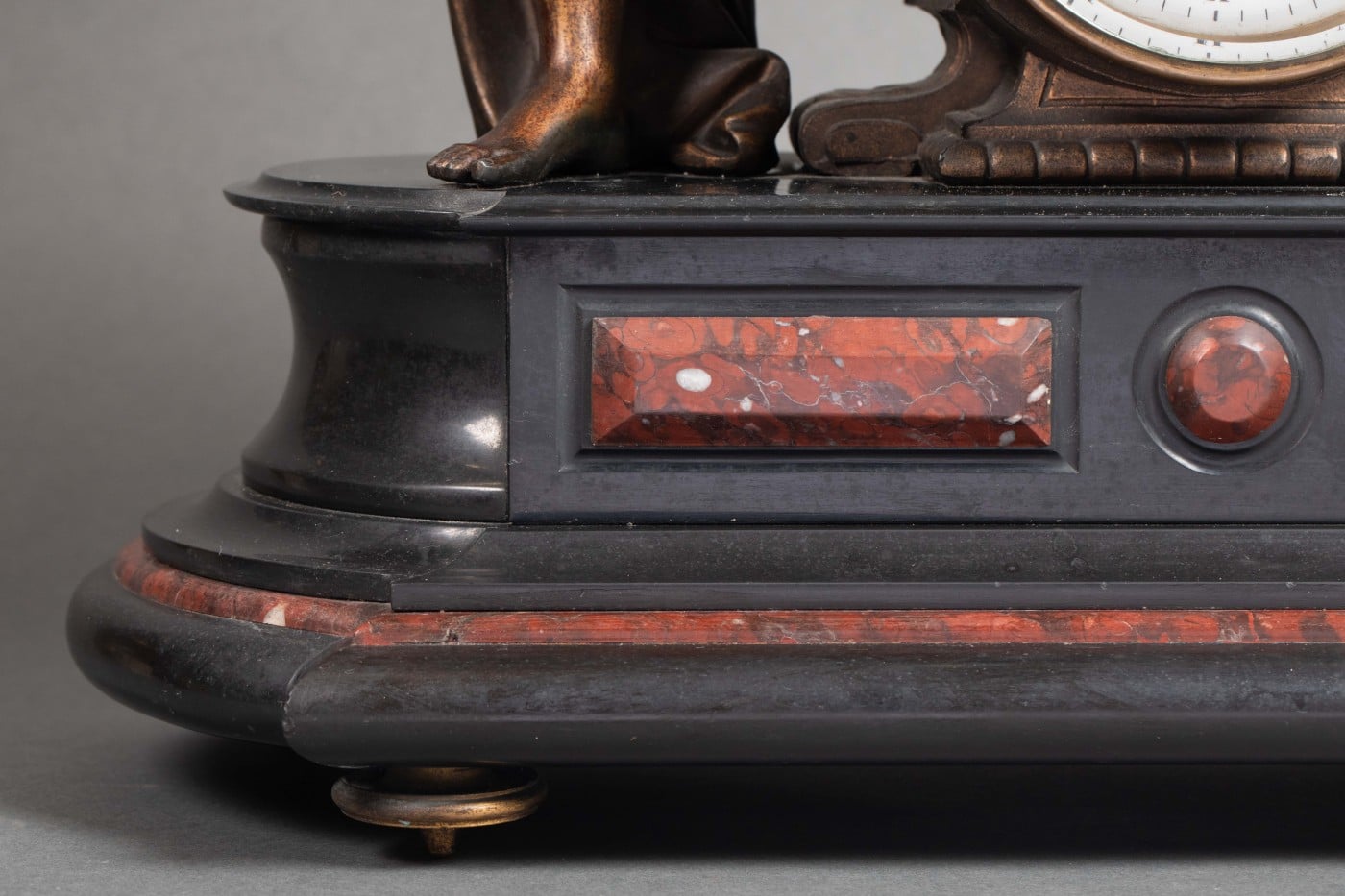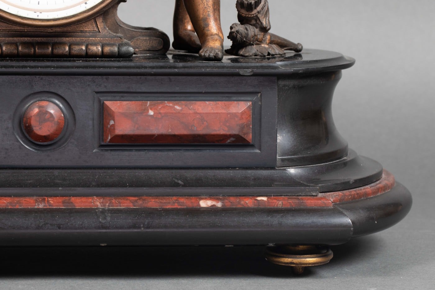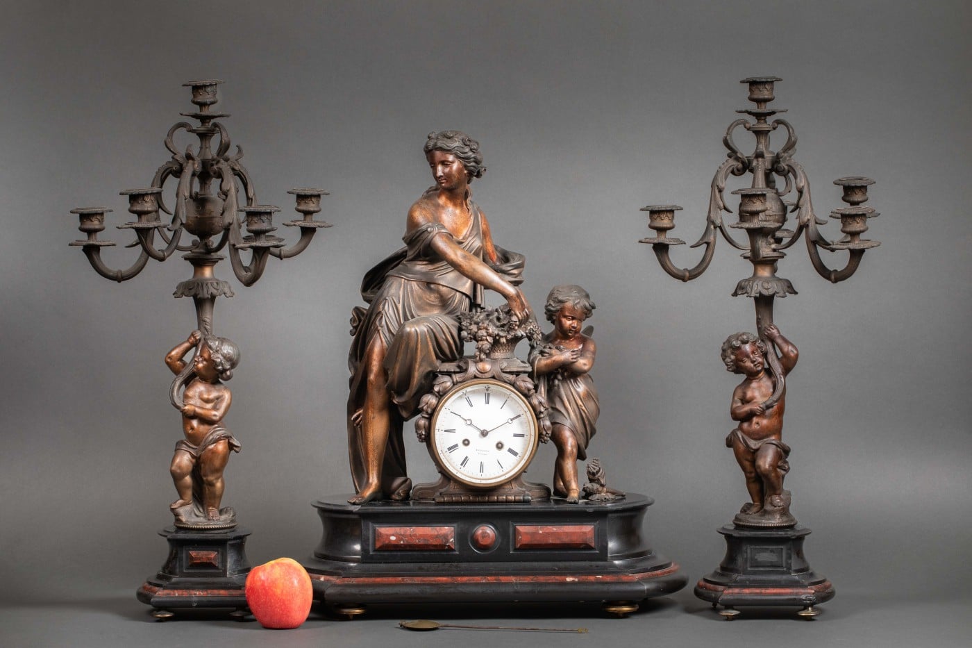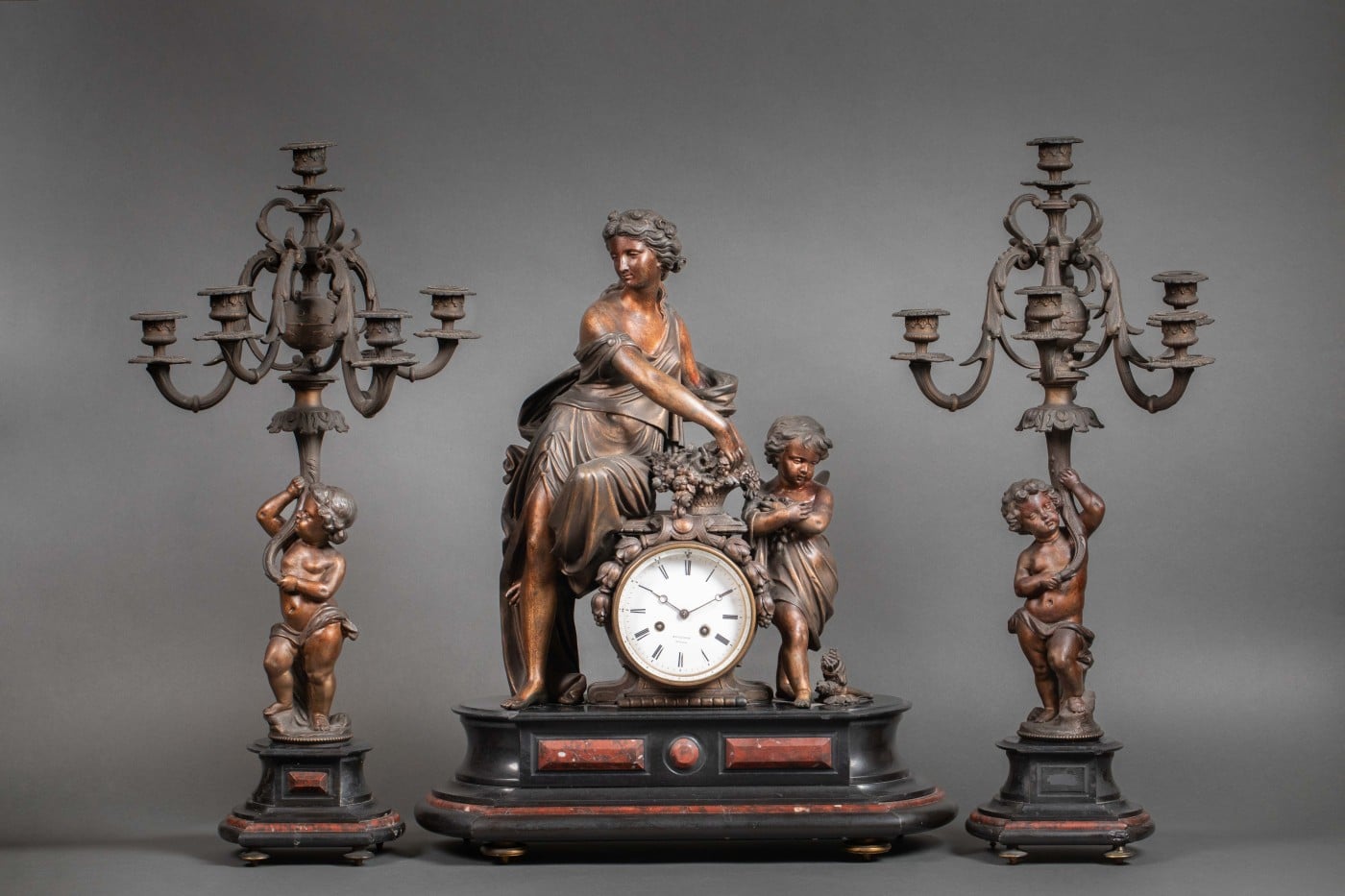 Importante garniture en régule et marbre rouge et noir.