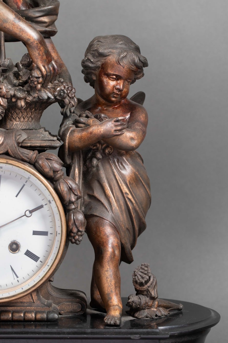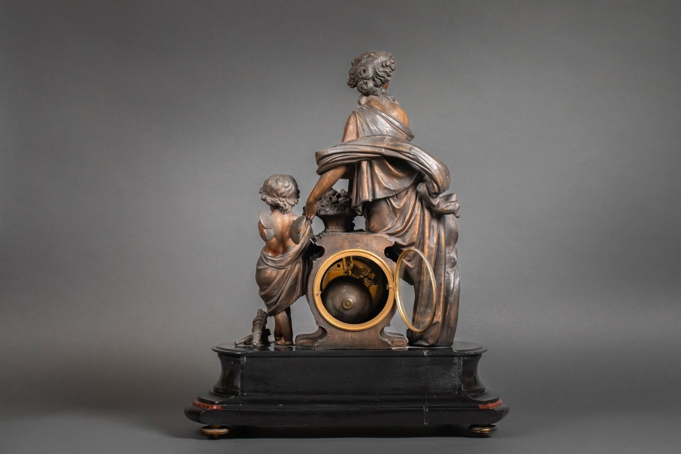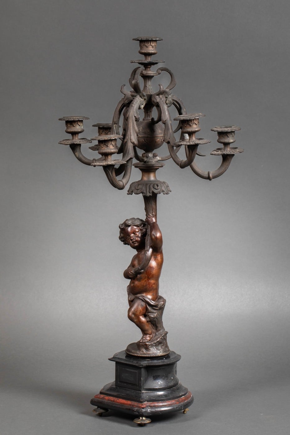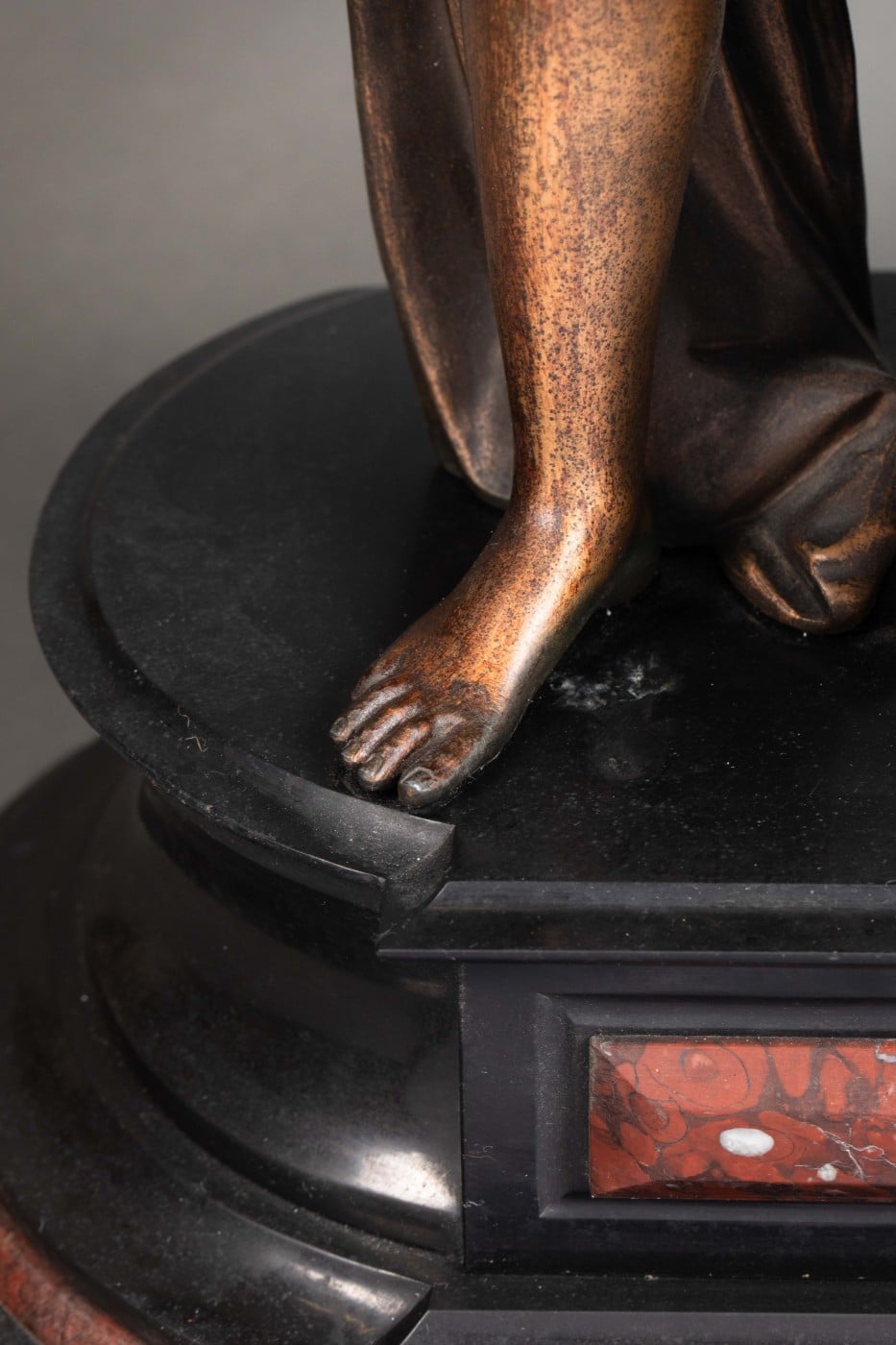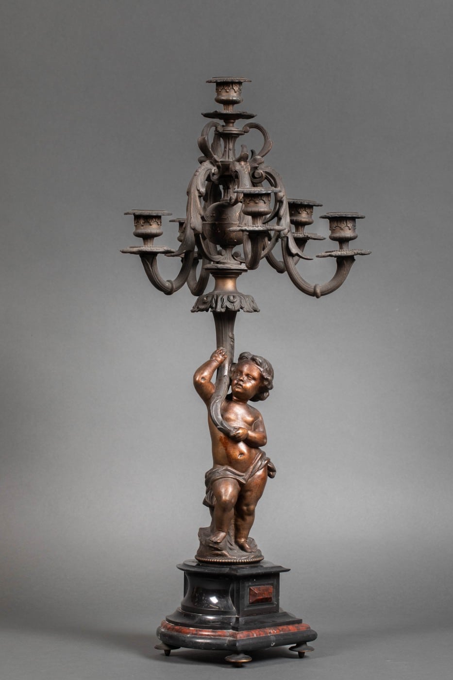 Importante garniture en régule et marbre rouge et noir.