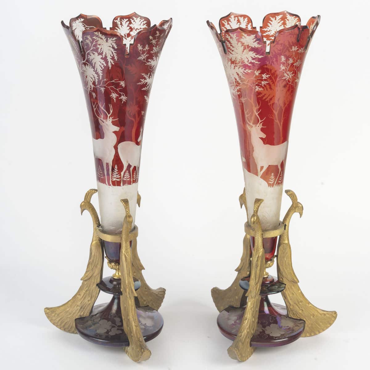 Une paire de vases en cristal de Bohème rouge, fin XIXème siècle