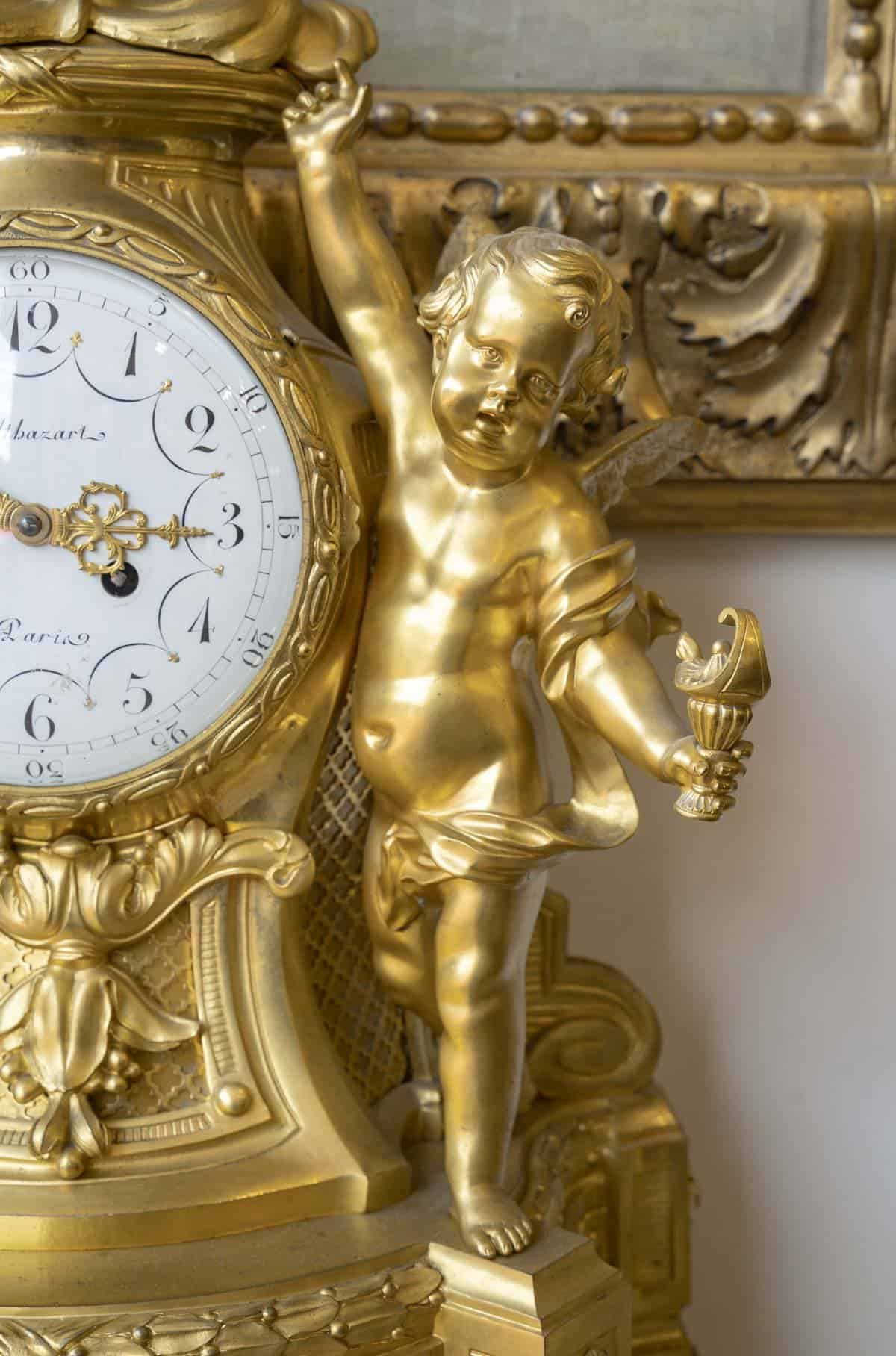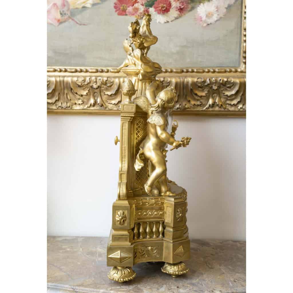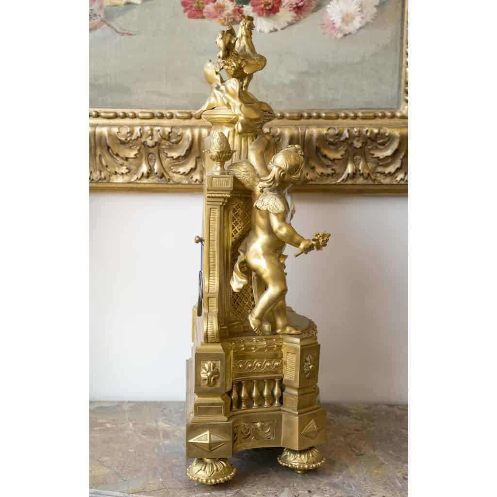 Une belle pendule en bronze doré de style Louis XVI représentant 2 angelots