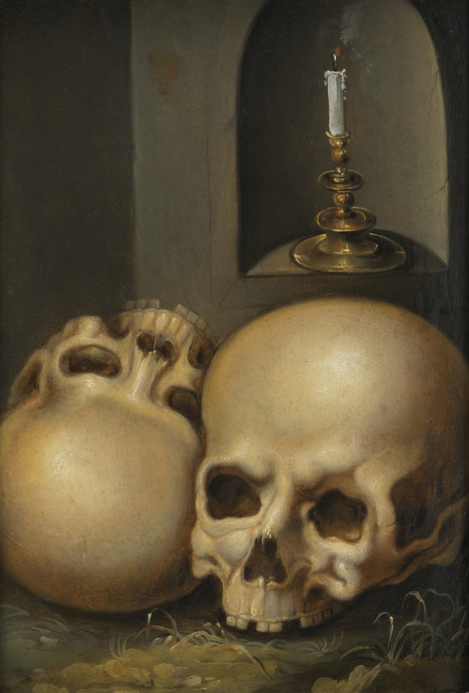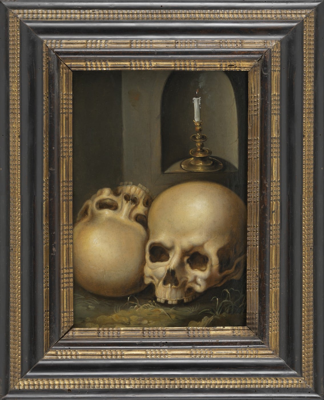Cette œuvre intime, peinte sur bois, s’inscrit dans le courant des vanités, genre emblématique de la peinture flamande et néerlandaise du XVIIe siècle. Dans une Europe marquée par les guerres de religion, les épidémies et les bouleversements sociaux, les vanités offraient un espace de réflexion morale. Elles étaient souvent destinées à des intérieurs privés où elles servaient de support à la méditation. Notre peinture, par son format modeste et son intensité silencieuse, s’inscrit pleinement dans cette fonction. Les vanités sont des natures mortes symboliques, qui rappellent la fragilité de la vie et la vanité des biens terrestres. Elles puisent leur origine dans la pensée chrétienne et dans les textes bibliques, notamment l’Ecclésiaste : « Vanité des vanités, tout est vanité ».