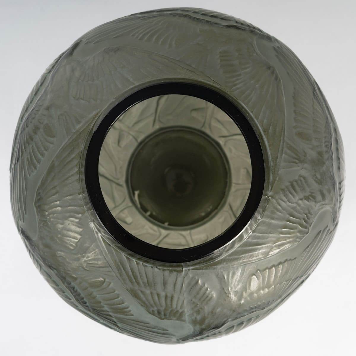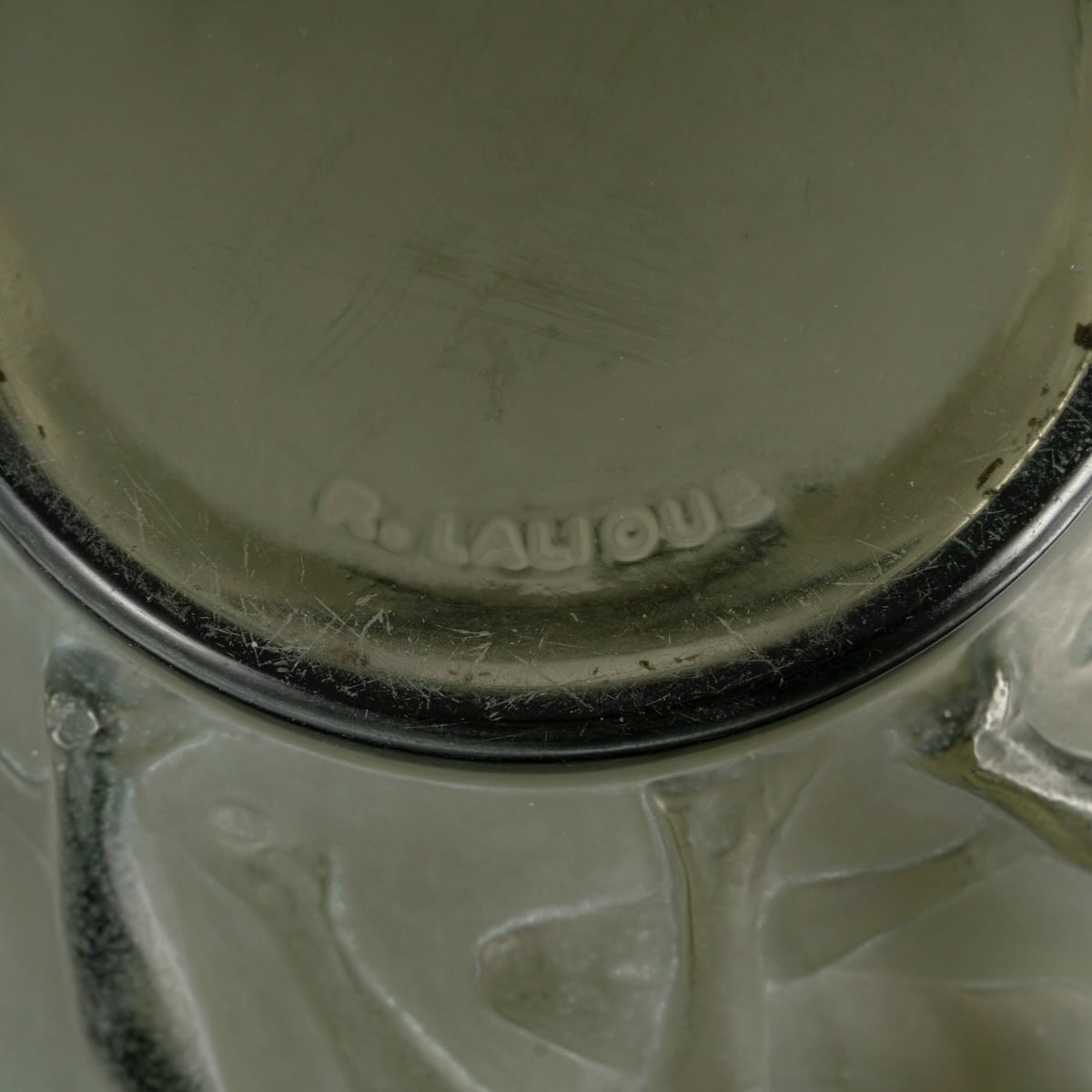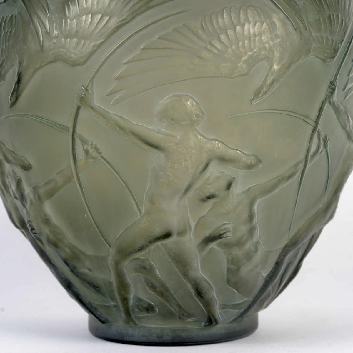 Vase « Archers » en verre gris topaze patiné blanc de René Lalique créé en 1921.