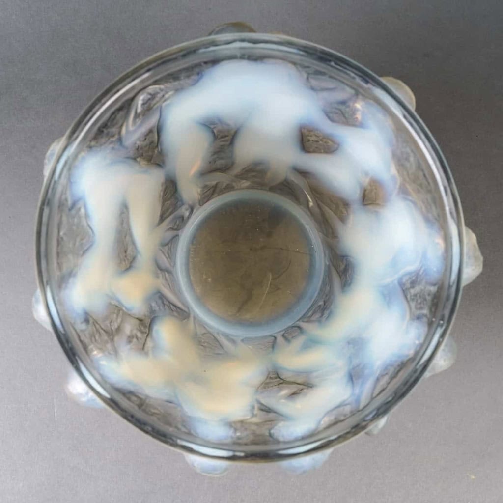 Vase « Bacchantes » en verre opalescent patiné gris de René Lalique créé en 1927.