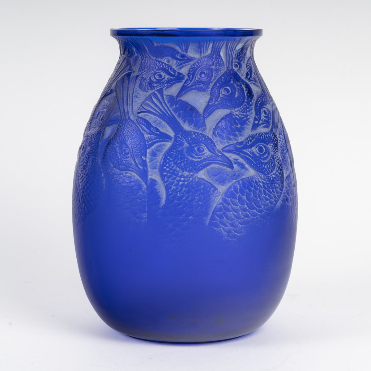 Vase « Borromée » en verre bleu cobalt patiné blanc de René Lalique créé en 1928.