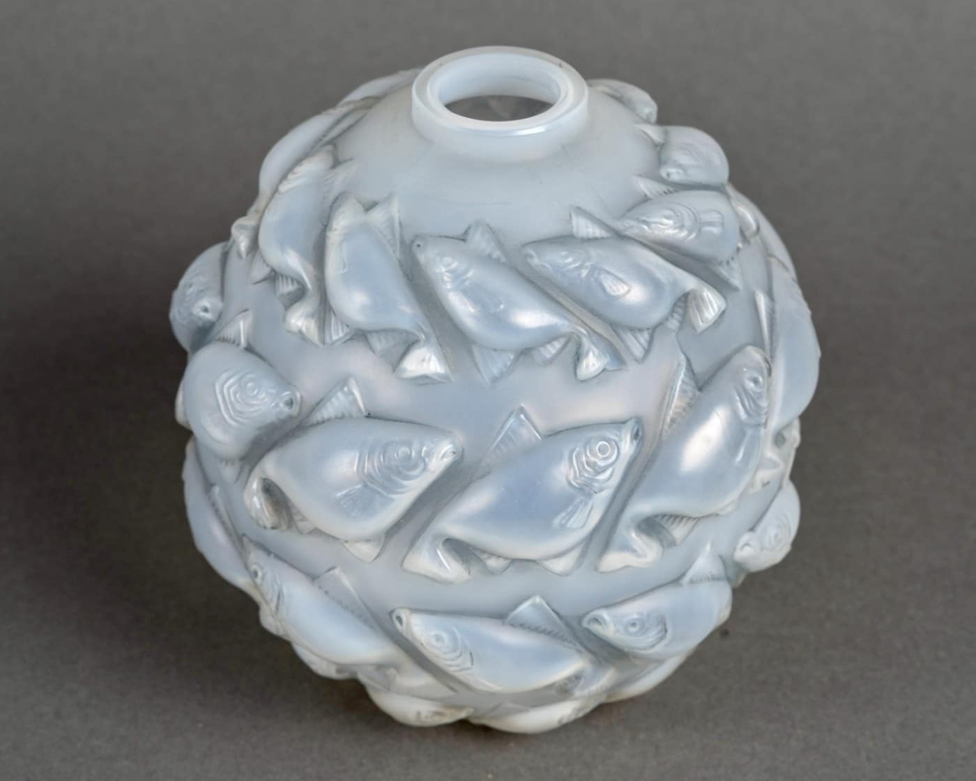 Vase « Camaret » verre opalescent double couche patiné bleu de René Lalique créé en 1928.