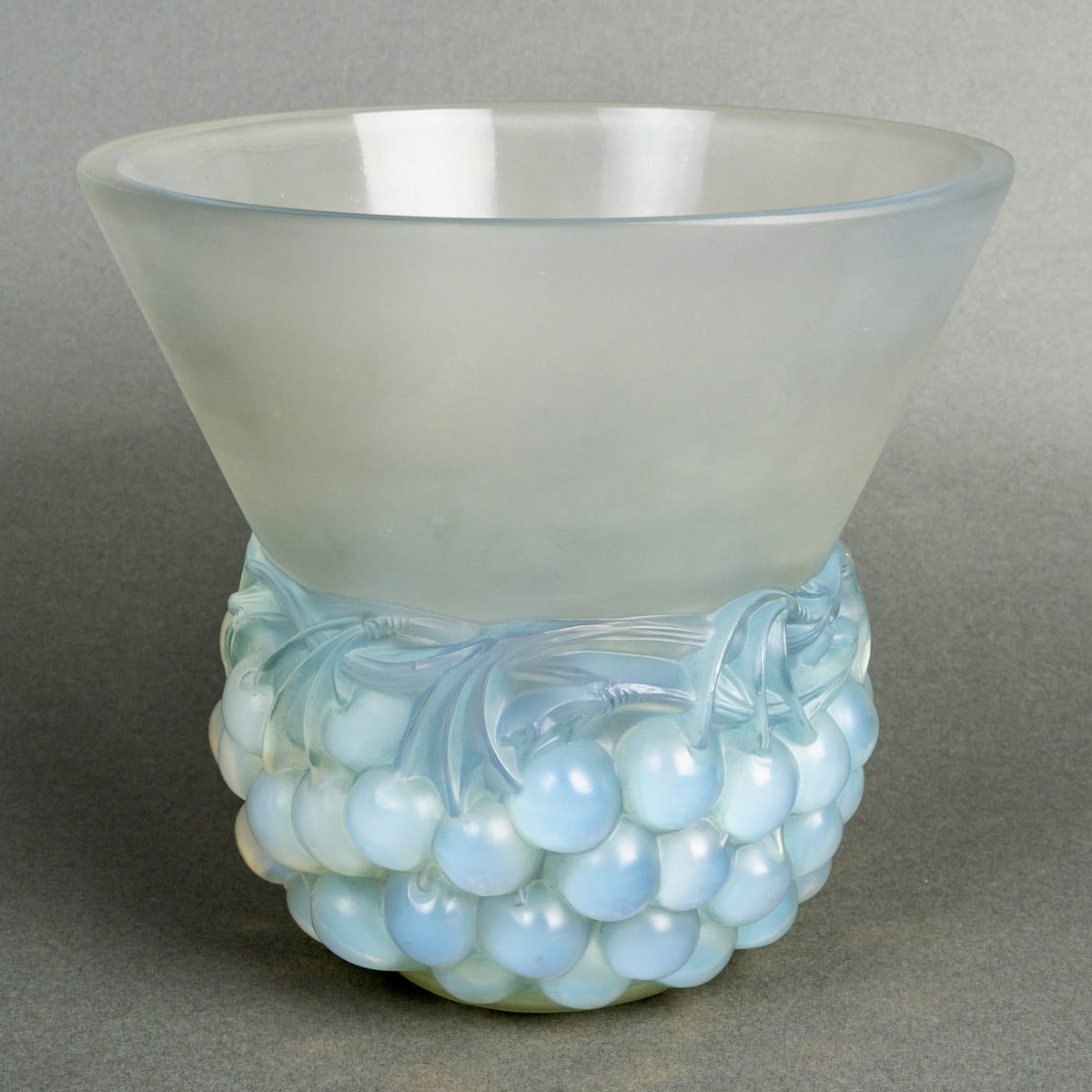 Vase « Cerises » en verre opalescent patiné bleu de René Lalique créé en 1930.