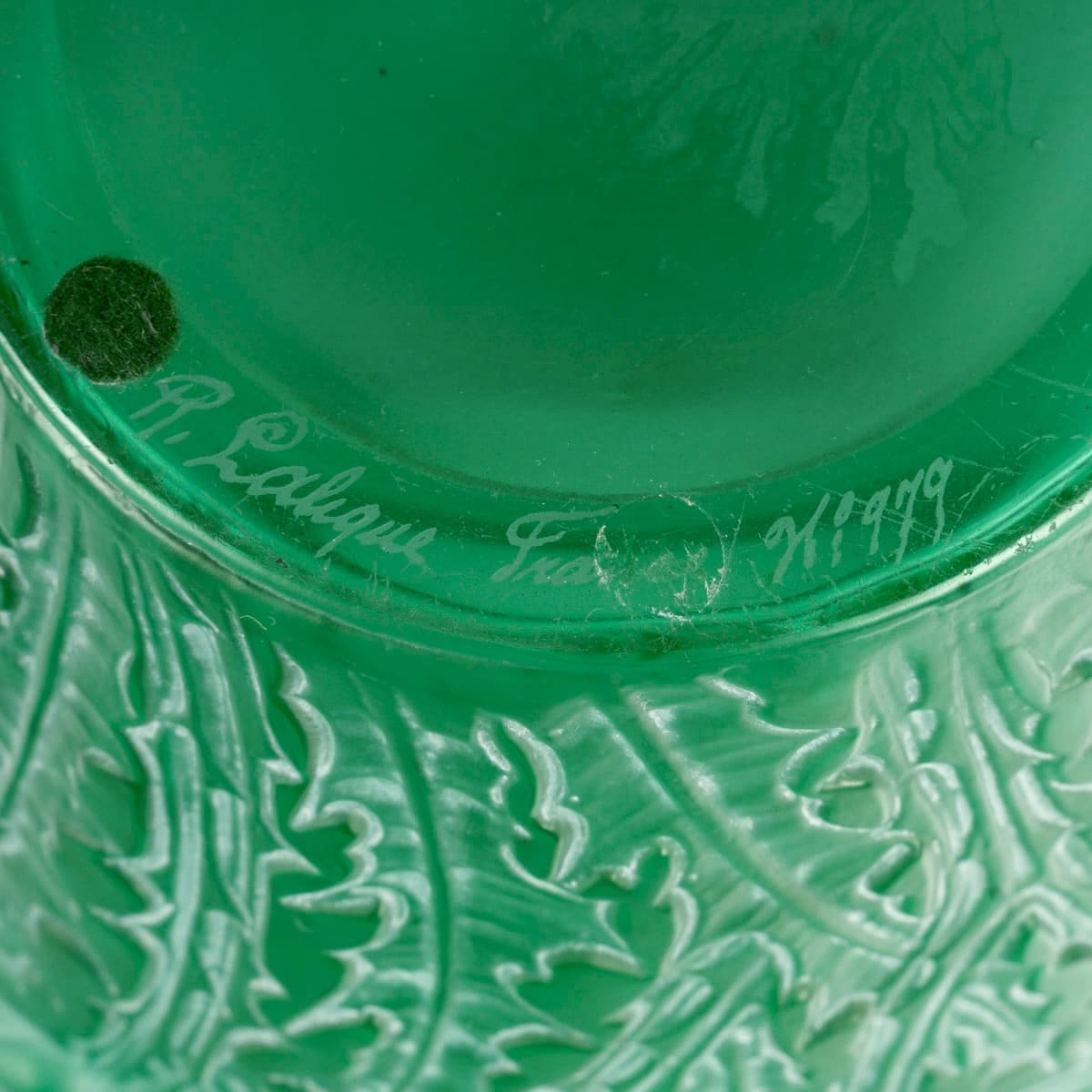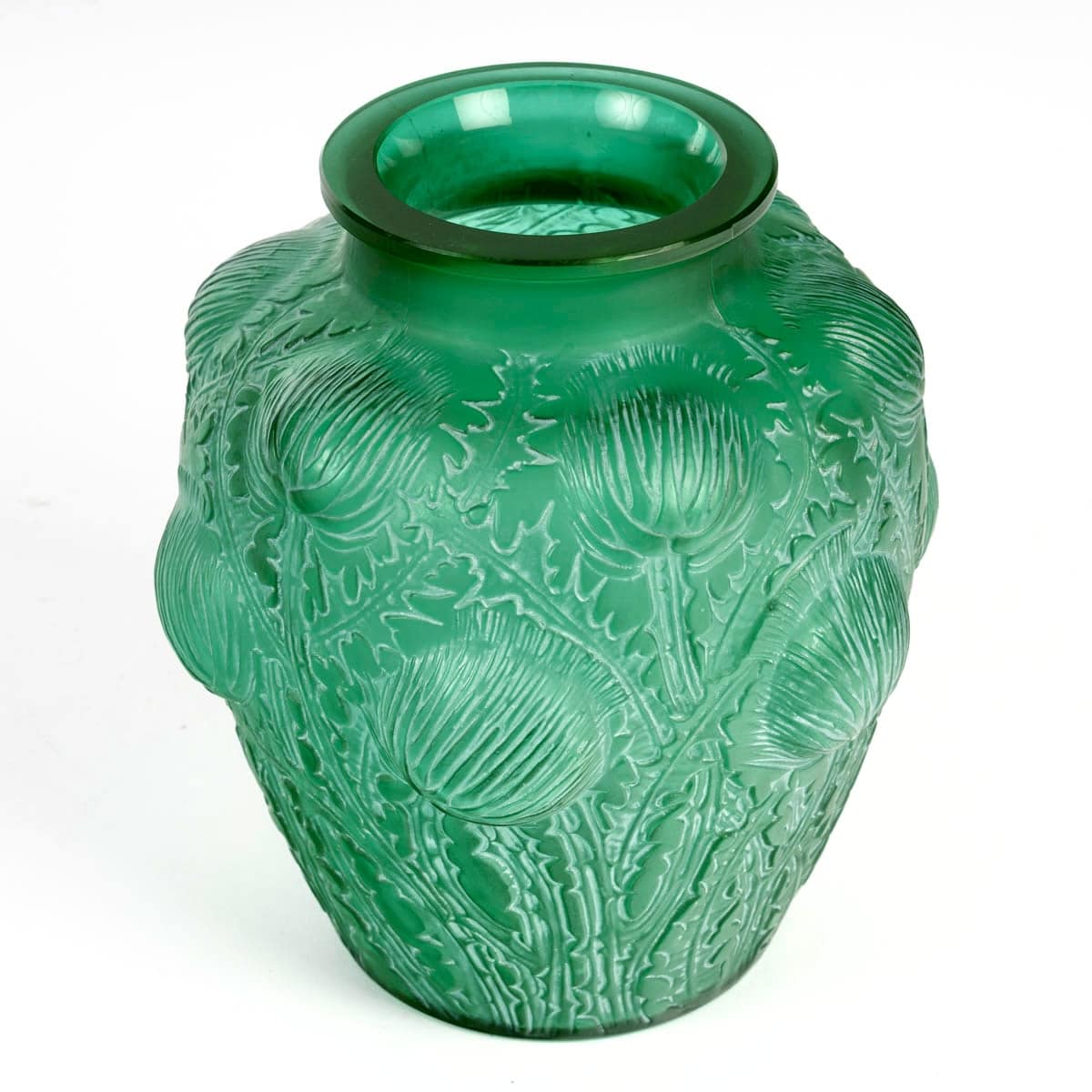 Vase « Domrémy » verre vert émeraude patiné blanc de René LALIQUE